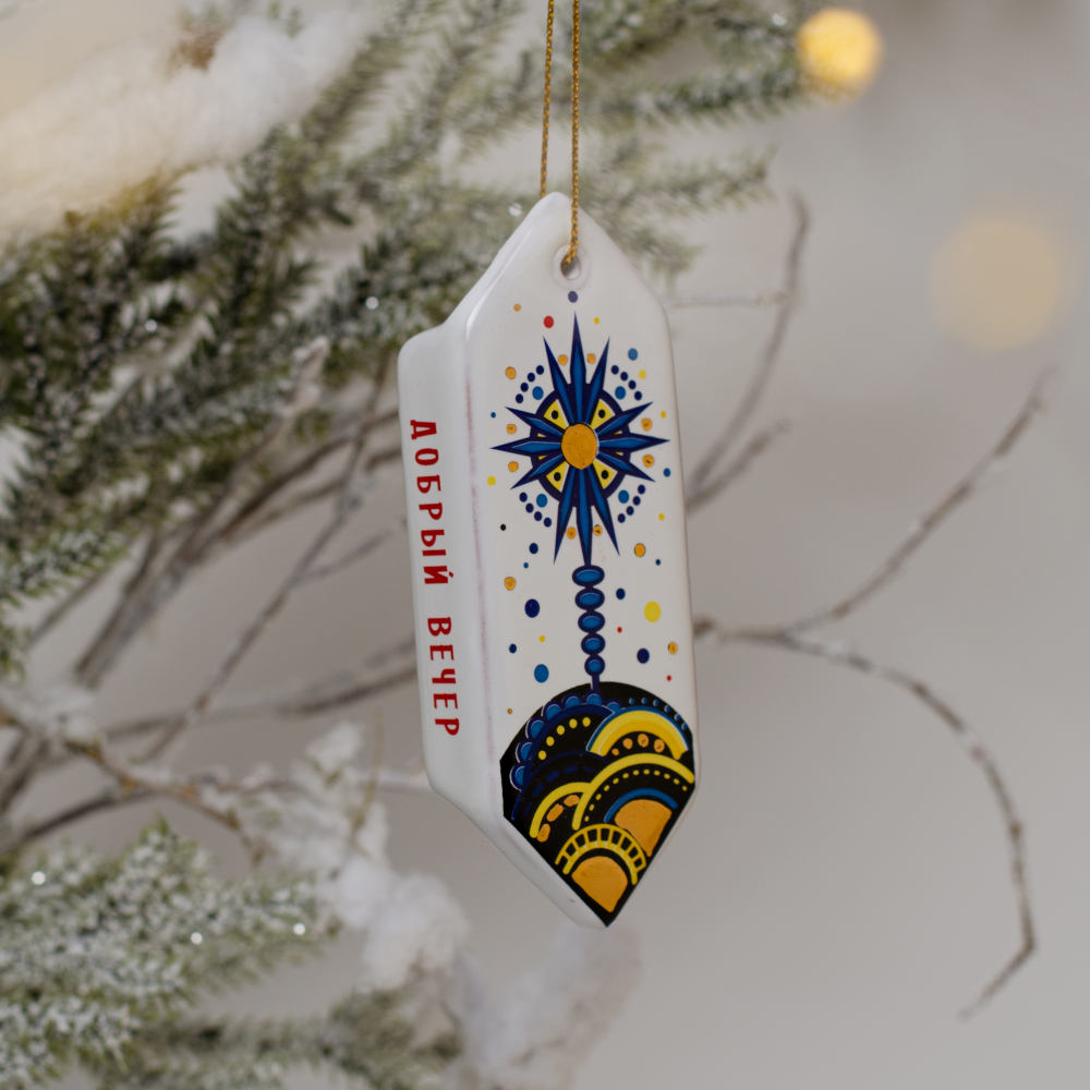 Подвес-конфета “Синяя звезда”- изделие ручной работы, украшенное авторской деколью, входящее в состав коллекции “Колядки”.