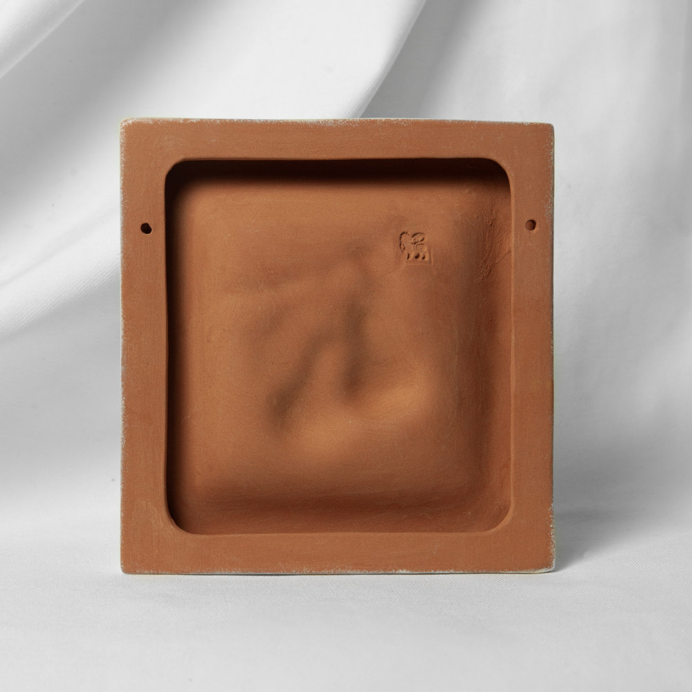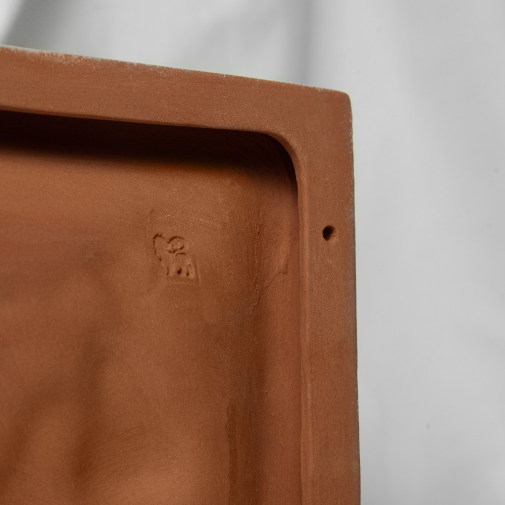 Изделие выполнено в технике майолика, материалы: красная глина, белая глазурь, высокотемпературный обжиг, художественная роспись.