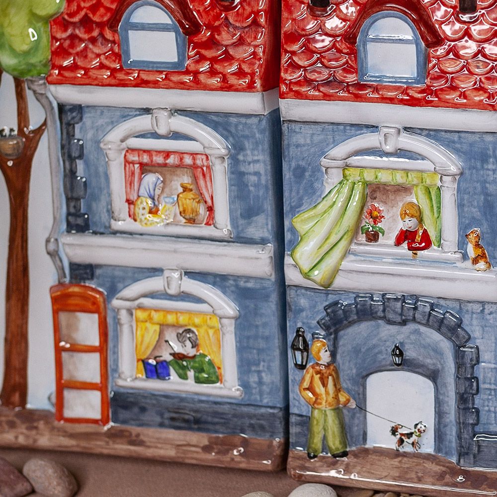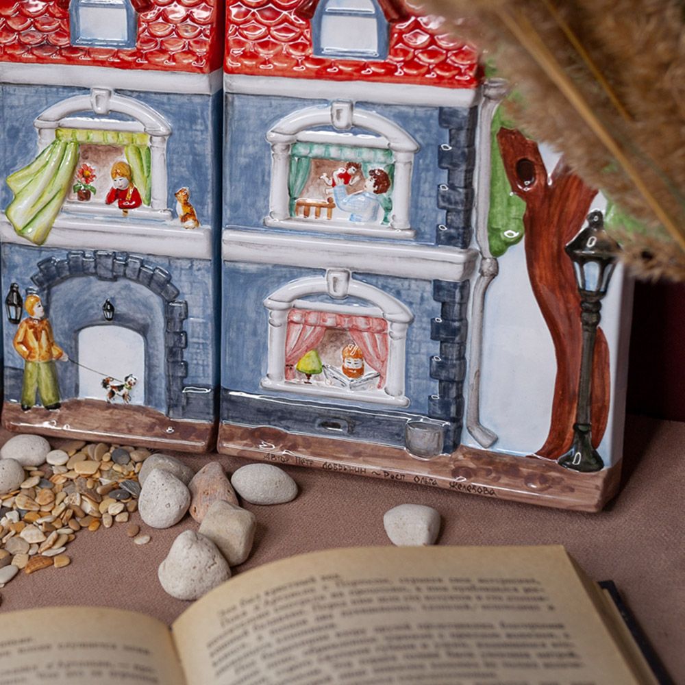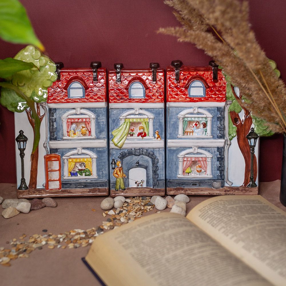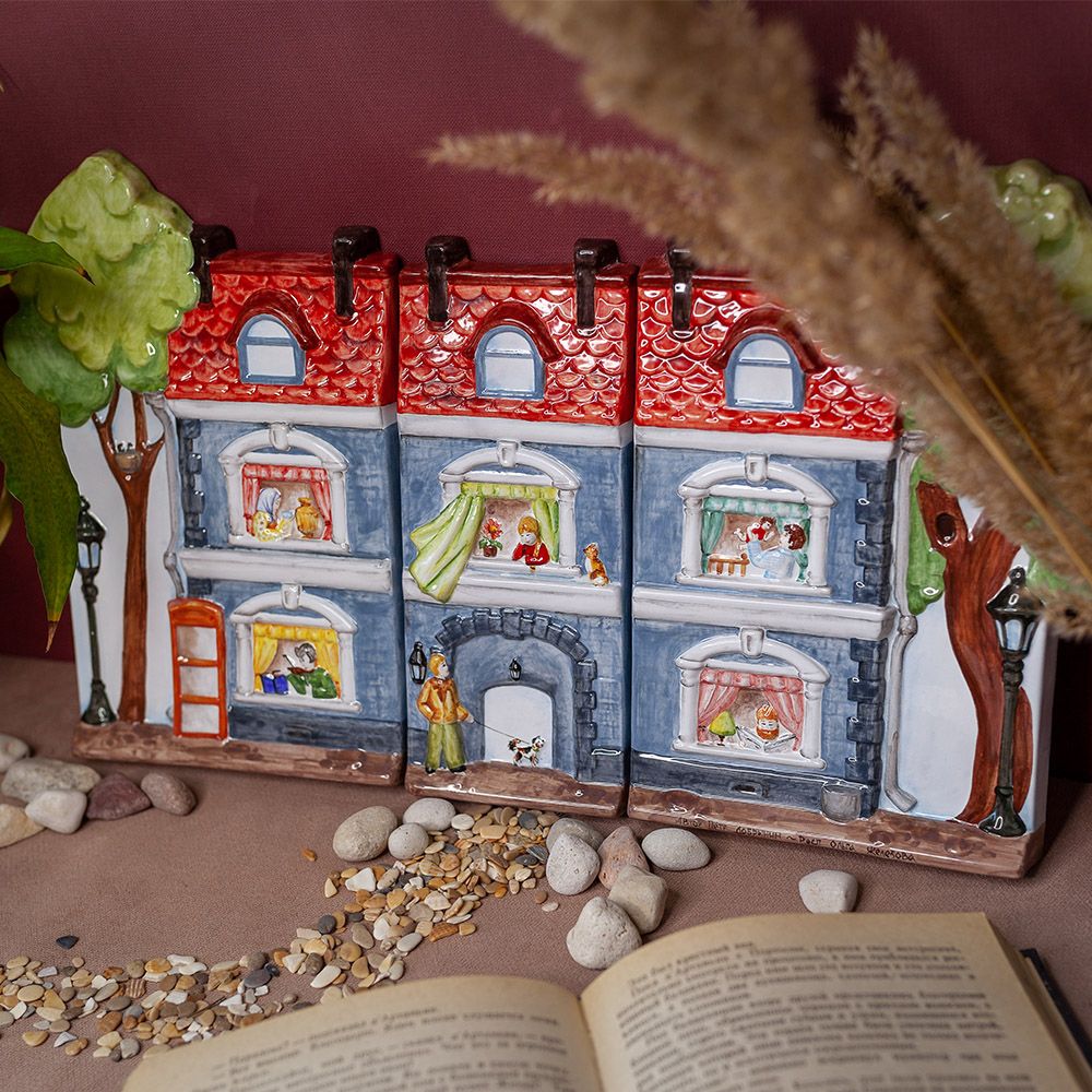 Рельеф-триптих “”Дом”” изготовлен в технике майолика и украшен ручной художественной росписью. Изображение многоквартирного дома, где каждое окно представляет свою жизнь с радостями и трудностями, призывает ценить то, что у нас есть и уважать индивидуальность каждого человека. Эта глубокая идея, воплощенная в рельефе, является не только декоративным элементом, но и философским посланием к жизни и ценностям нашего мира. Это эффектное и яркое панно станет стильным и необычным дополнением к интерьеру, придавая ему особую атмосферу. Кроме того, такое изделие будет прекрасным подарком, который не только украсит дом или квартиру, но и передаст глубокий смысл и пожелания о ценности жизни и ее уникальности.”