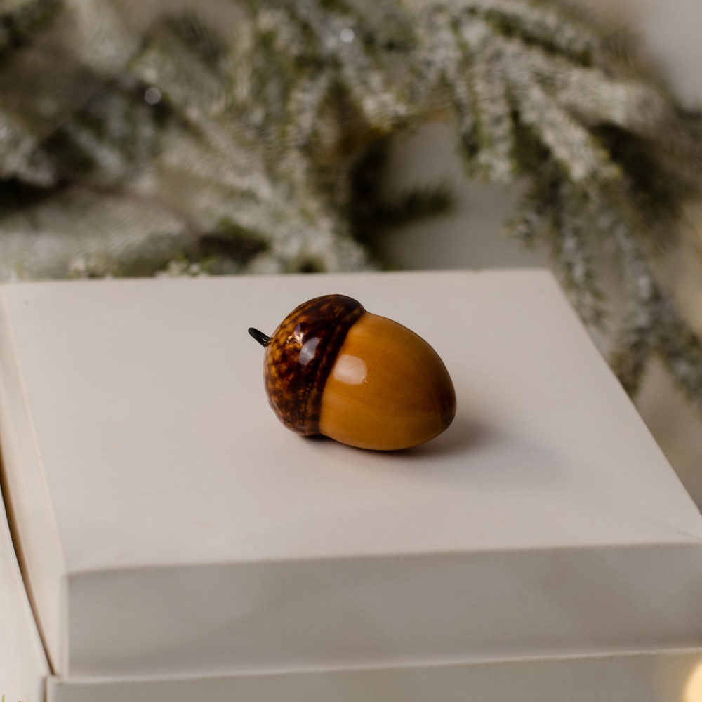 Желудь символизирует силу, рост, удачу и защиту. Этот маленький символ природы словно хранит тепло и энергию. Подвес идеально подходит для украшения маленькой елочки. Он добавит ей натурального, уютного настроения и подарит атмосферу праздника.