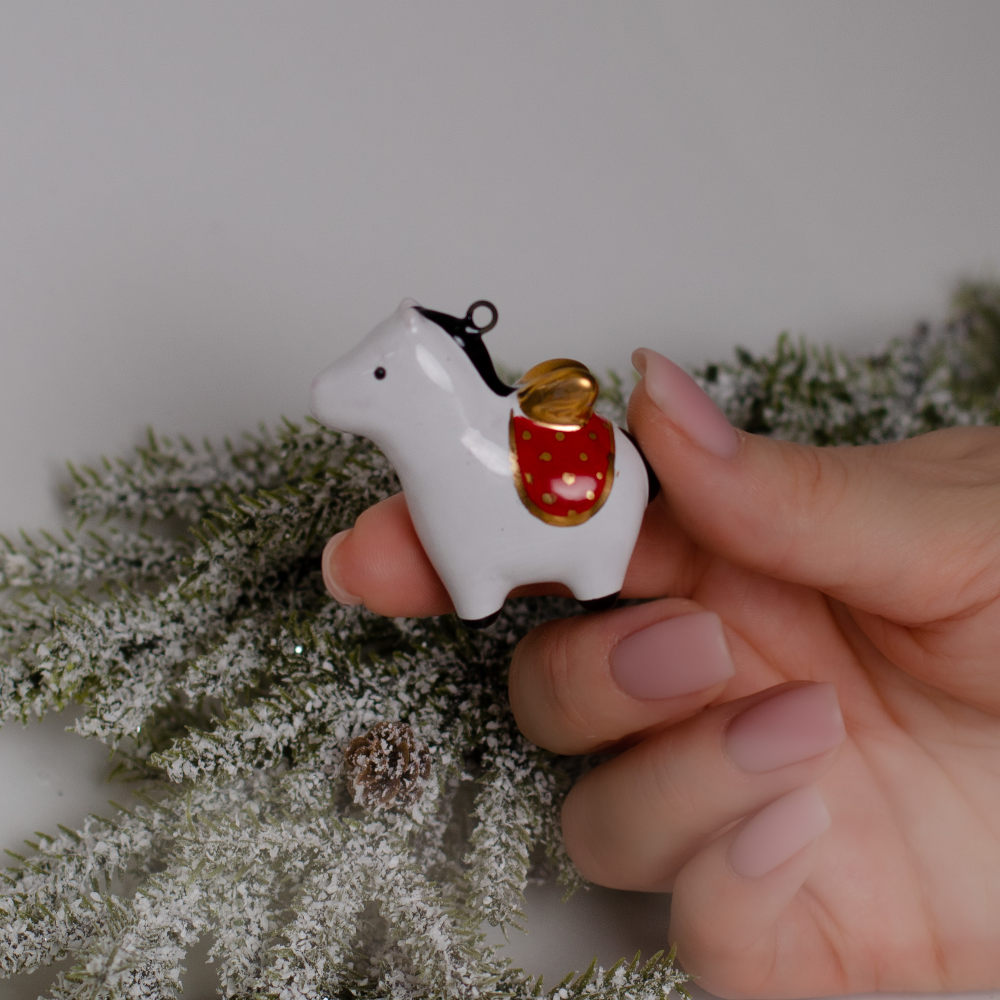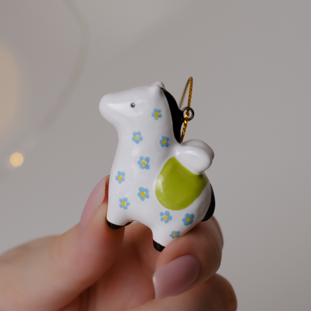 Материалы изготовления: красная глина, глазурь, высокотемпературный обжиг, ручная роспись. Подвес “”Лошадка”” выполнен в технике майолика, украшен ручной художественной росписью и входит в коллекцию украшений “”Для маленькой ёлочки””. Фигурка лошадки станет не только украшением для елочки, но и отличным подарком для друзей и близких. Соберите всю коллекцию мини-украшений, чтобы малышка-елочка была самой красивой и нарядной”