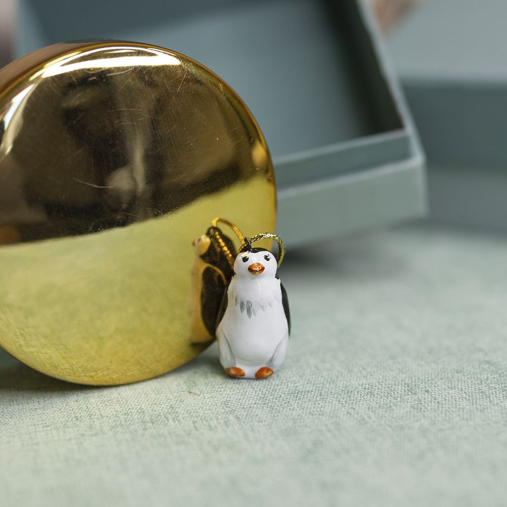 Фигурка “”Пингвин”” изготовлена в технике майолика и украшена ручной художественной росписью. Фигурка представляет собой мини-подвес для украшения ёлки. Маленький пингвин добавит веселья и уюта в домашний интерьер. Это милый подарок для друзей и близких в новогодние праздники, а также займет почетное место в коллекции у любителей керамических изделий и животных.”