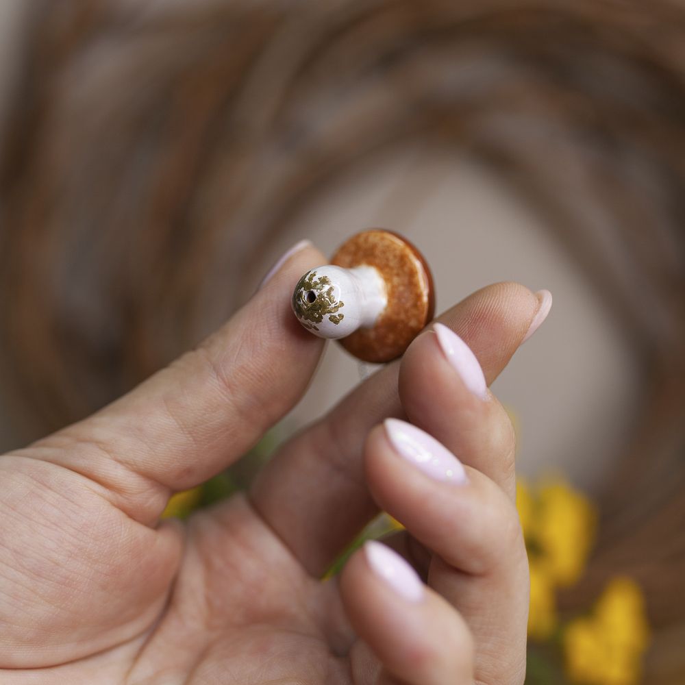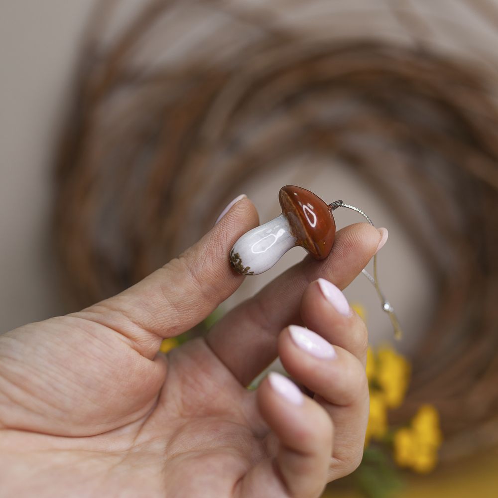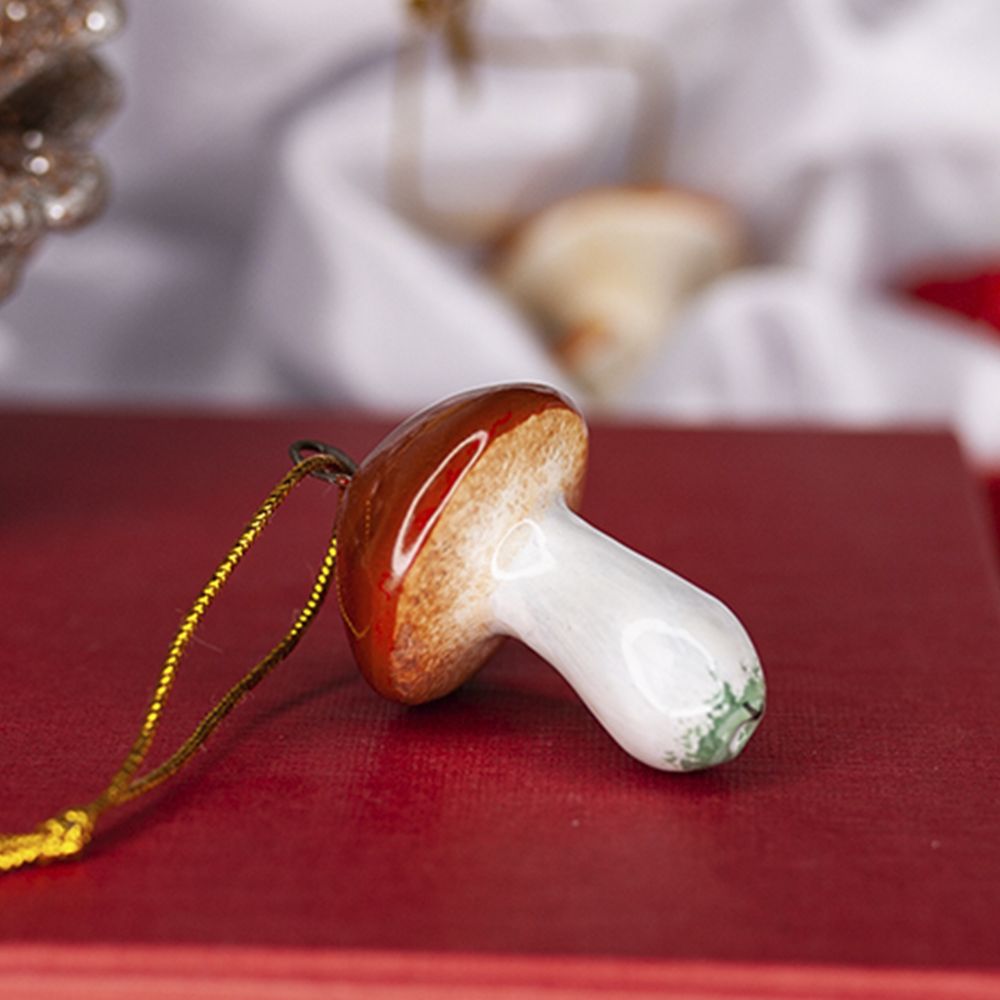 Подвес “”Подберезовик”” выполнен в технике майолика, украшен ручной художественной росписью и входит в коллекцию украшений “”Для маленькой ёлочки””. Этот очаровательный гриб подберезовик, который с удовольствием кладут в корзину любители “”тихой охоты””, будет интересным украшением для вашей маленькой новогодней елочки. “”Гриб подберезовик”” также станет прекрасным и милым подарком для ваших близких и друзей. Соберите всю коллекцию мини-украшений, чтобы малышка-елочка была самой красивой и нарядной.”