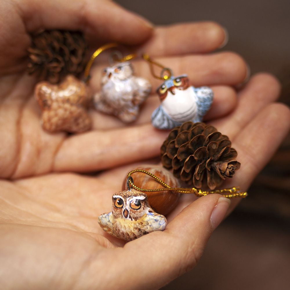 Подвес “”Совенок”” выполнен в технике майолика, украшен ручной художественной росписью и входит в коллекцию подвесов “”Для маленькой ёлочки””. Сова – таинственная ночная птица, символ мудрости и интуиции, по преданиям, эта птица видит то, что другим не подвластно. Верная спутница ученых и помощница тех, кто приобретает знания. Этот подвес станет замечательным украшением для маленькой ёлочки, а также символичным подарком для близких и друзей. Соберите всю коллекцию мини-украшений, чтобы малышка-елочка была самой красивой и нарядной.”