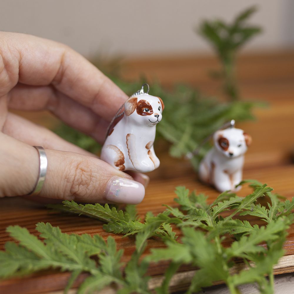 Подвес “”Щенок”” выполнен в технике майолика, украшен ручной художественной росписью и входит в коллекцию украшений “”Для маленькой ёлочки””. Щенок, символизирует верность, радость и игривость, будет прекрасным украшением на новогодней елочке, а также милым подарком для близких и любителей собак. Соберите всю коллекцию мини-украшений, чтобы малышка-елочка была самой красивой и нарядной.”