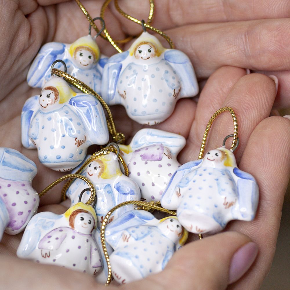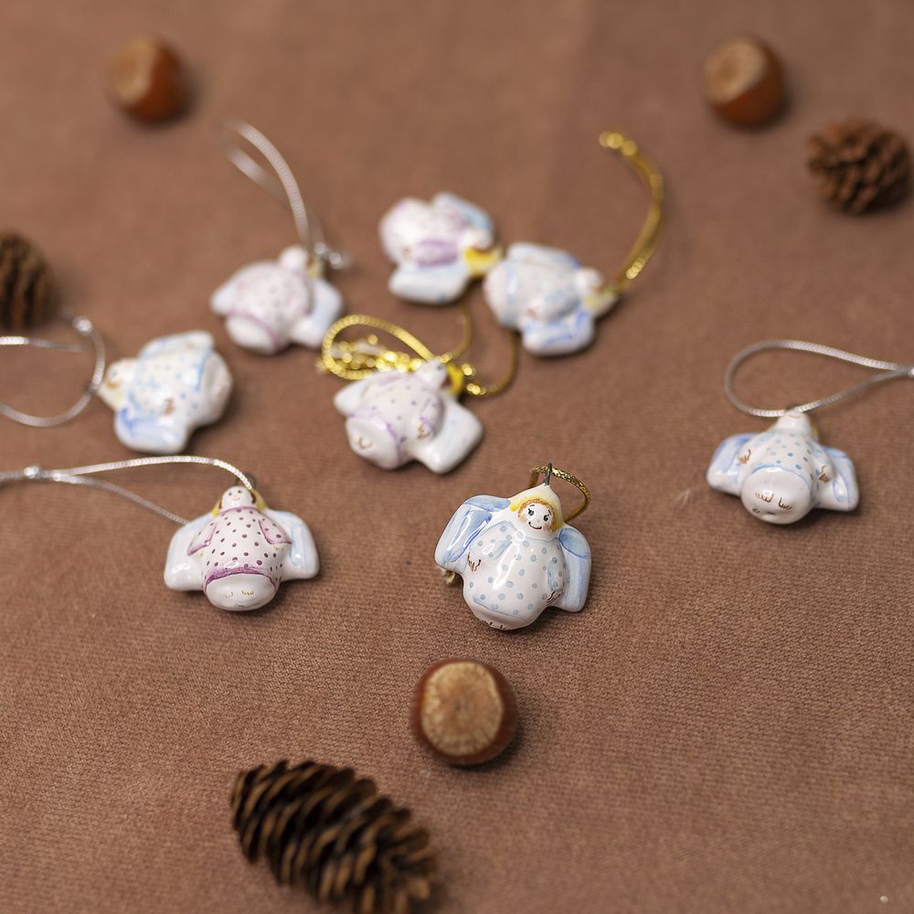 Мини-подвес “”Ангелочек”” изготовлен в технике майолика, украшен ручной художественной росписью и входит в коллекцию украшений “”Для маленькой ёлочки””. Ангелочек считается символом защиты, надежды и доброты. Его присутствие на елочке или в качестве подарка близкому человеку – пожелание безопасности и удачи. Милые миниатюрные ангелочки приносят радость и свет в дом, создавая атмосферу мира и любви. Крылатый хранитель, благодаря своим компактным размерам, может стать не только украшением в интерьере, но и модным аксессуаром – на булавке, как кулон, брелок или украшение для кошелька. Этот уникальный подвес станет необычным дополнением к вашей коллекции украшений и призывом к духовной гармонии и защите.”