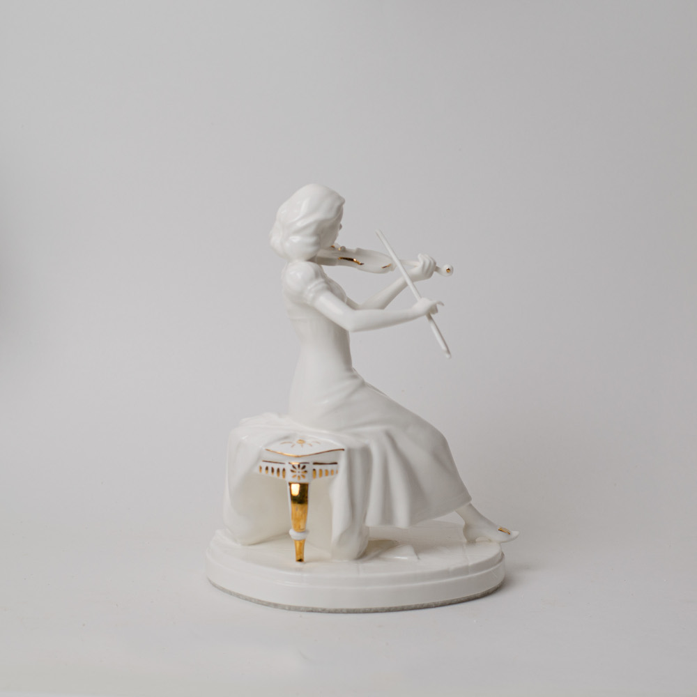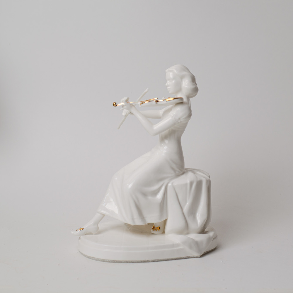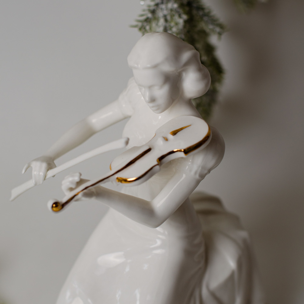 Фигурка “Скрипачка” — воплощение красоты, грации и эстетики ручной работы. Изготовленная из фарфора, она украшена ручной росписью золотом, которые подчеркивают изящество деталей и придают изделию особый шик и благородство.
