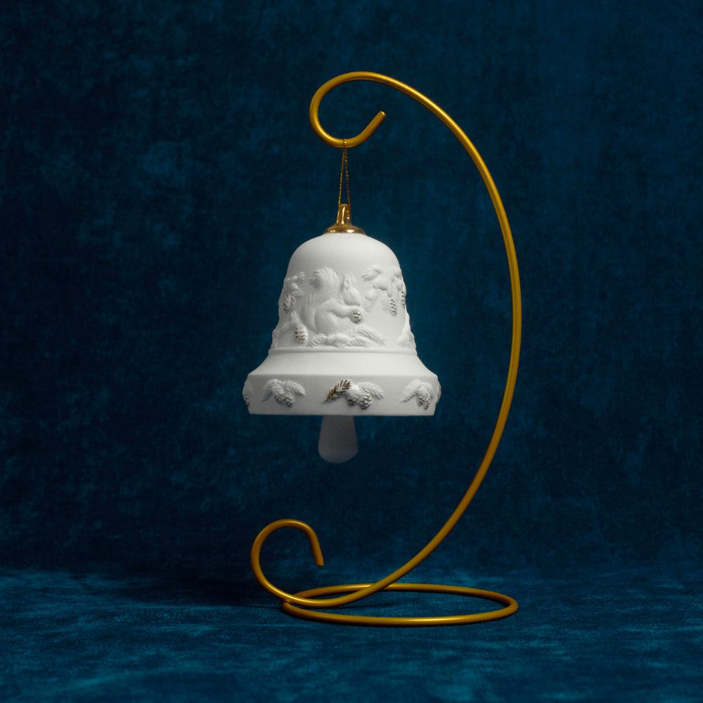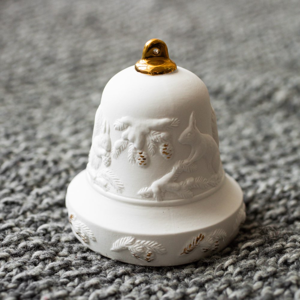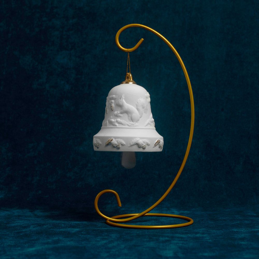 Колокол с новогодним рельефом белочки (фарфор) (без подставки)