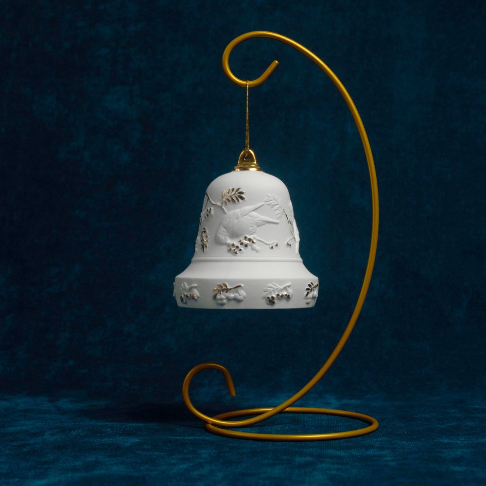 Колокол с новогодним рельефом снегири (фарфор) (без подставки)