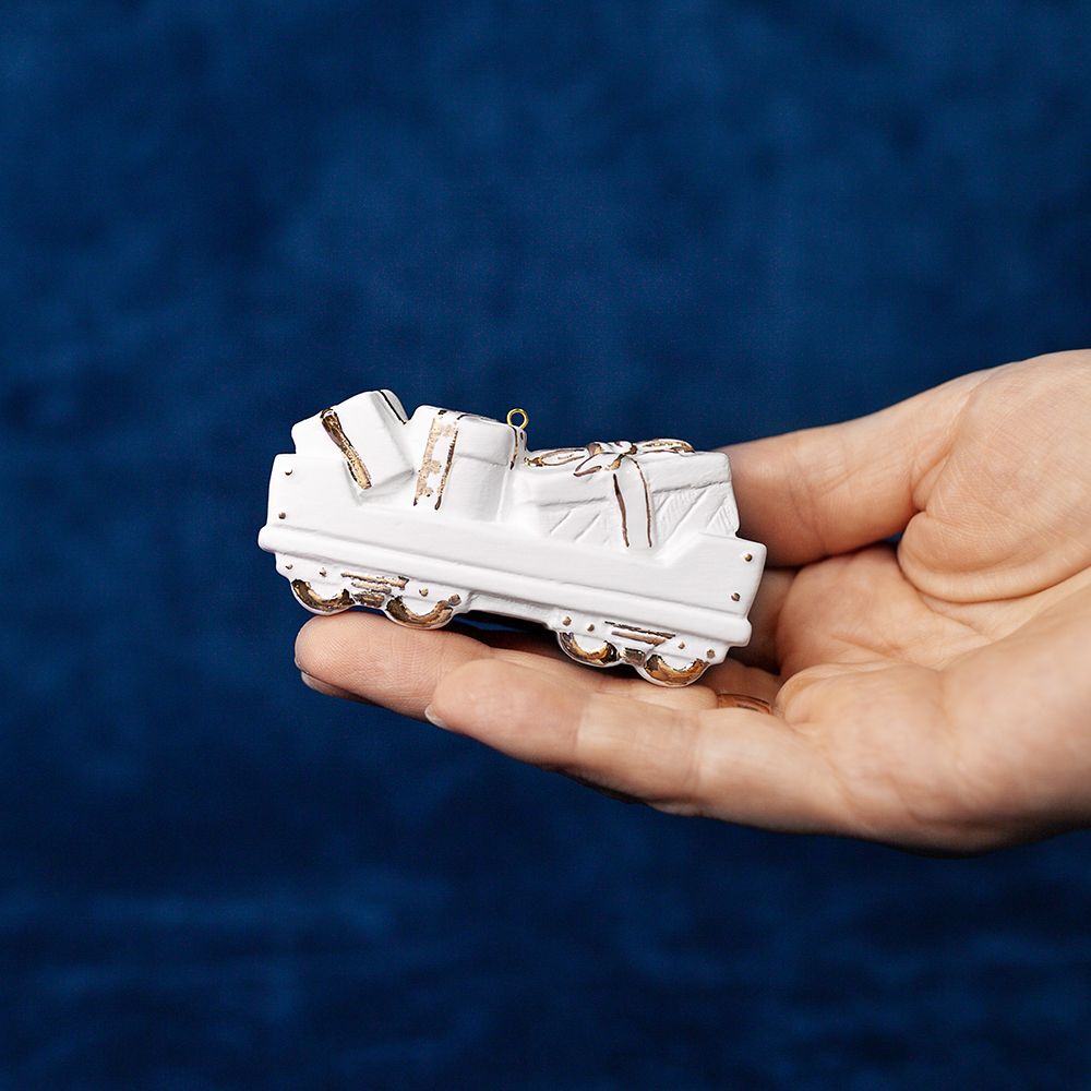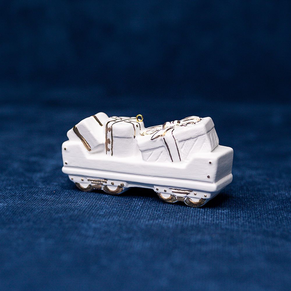 Ёлочная игрушка Вагончик с маленькими подарками (фарфор, золото)