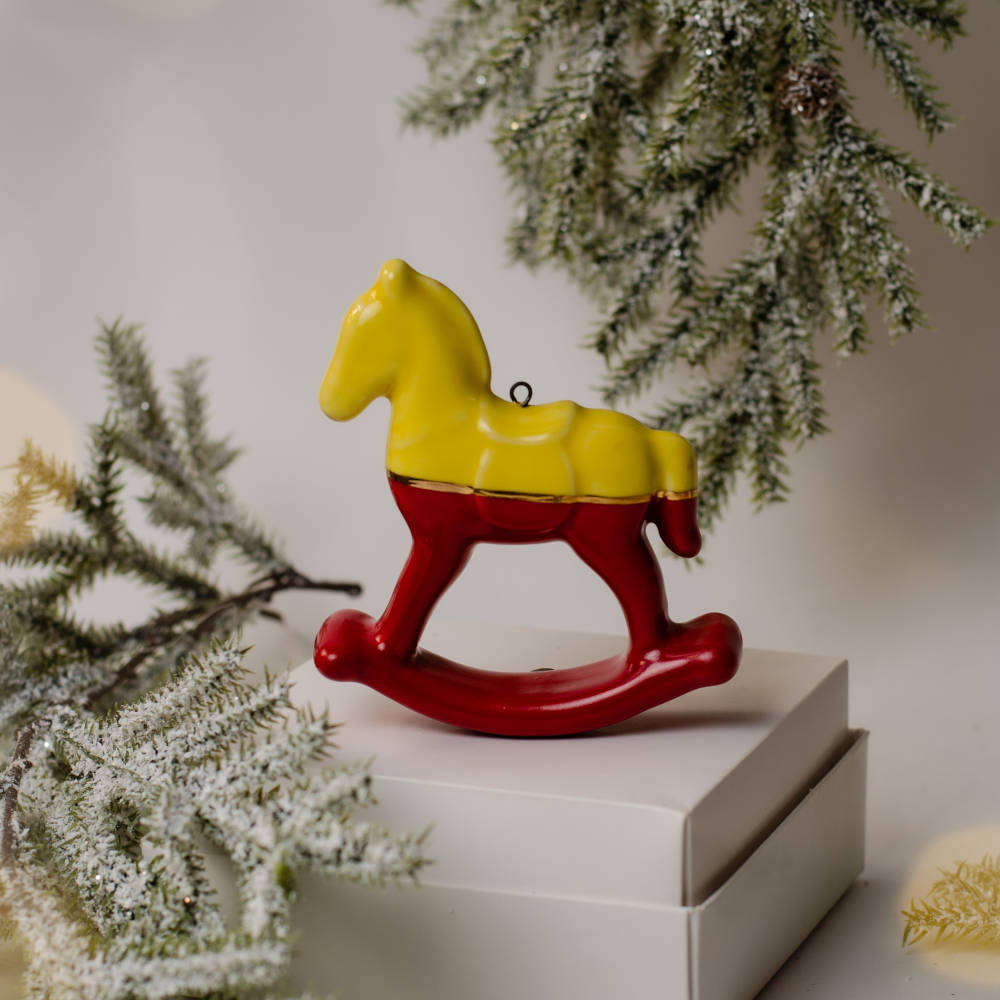 Лошадка качалка двухцветная с золотом (жёлтая с красным)