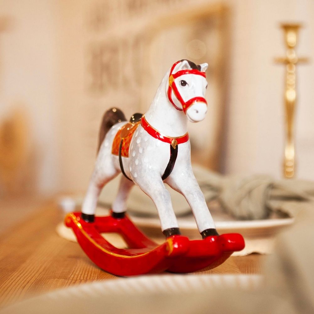Данное изделие ручной работы входит в коллекцию интерьерных изделий и представляет фигуру лошадки-качалки. Фигурка лошадки-качалки будет особенным акцентом в интерьере, ярким украшением новогодней композиции и замечательным подарком людям, рожденным под этим знаком, или всем – к Новому году и Рождеству, особенно в год Лошади.