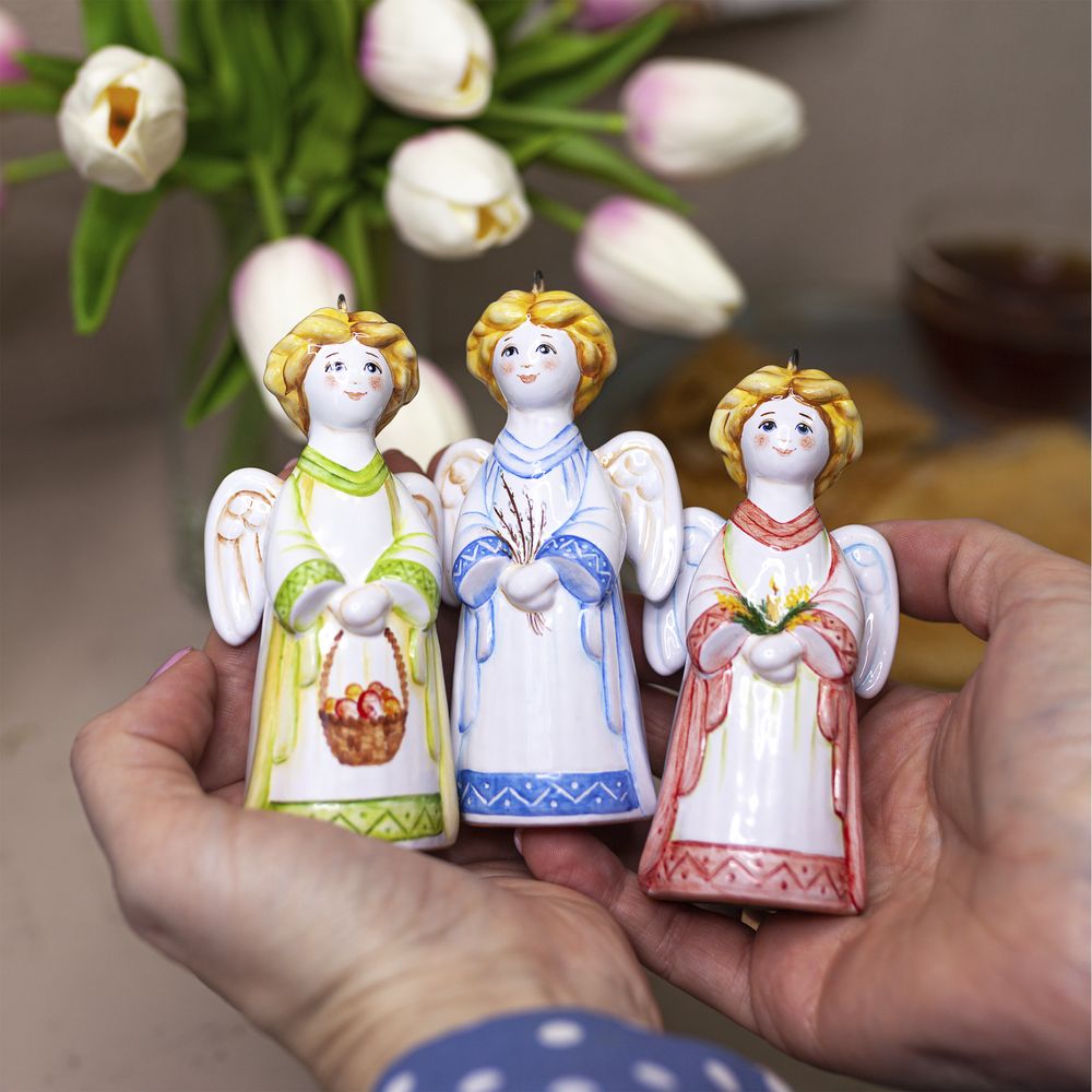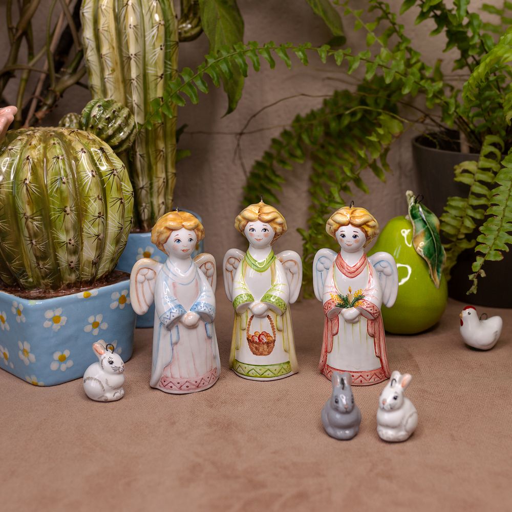 Это изделие ручной работы представляет собой фигурку ангела ручной работы, которая расписана художником нежными и легкими оттенками. Гармоничное сочетание цветов приносит особое настроение ожидания чуда. Ангел представлен в простом и понятном облике, со светлыми волосами и нежной улыбкой. Станет прекрасным подарком на именины, свадьбы, Новый год, Рождество, Пасху и другие праздники. Принято считать, что Ангелы избавляют от опасности, помогают преодолеть трудности, наполняют нашу жизнь миром и любовью. Наш Ангел словно излучает тепло. Изображения ангела принято дарить на удачу, так же Ангелы избавляют от опасности. Ангел станет украшением Вашей коллекции керамики, и возможно, прошепчет о том, почему он неизменно улыбается.