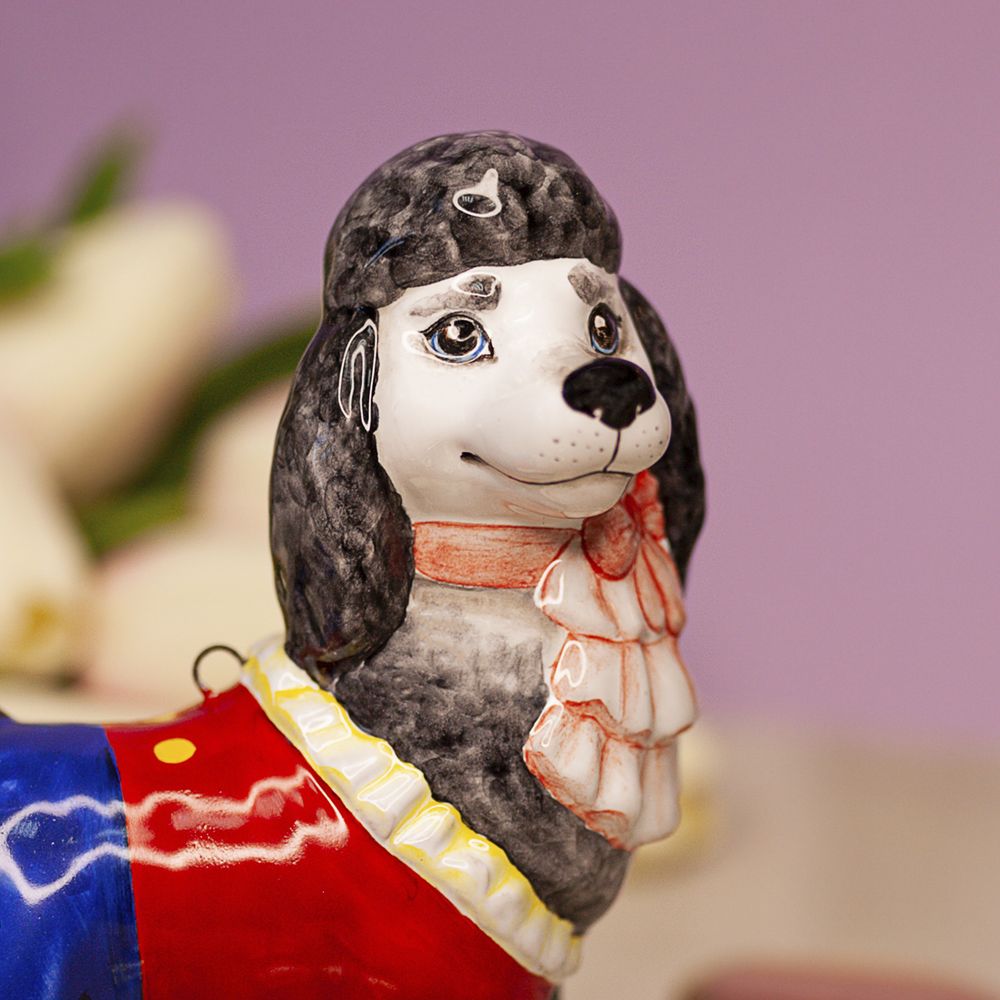 Изделие представляет фигурку пуделя Артемо́на — героя известной сказки, верного, доброго и заботливого друга Мальвины. Он щегольски одет, отличается благородным характером и храбростью. Изделие интересно для оформления интерьеров, будет эксклюзивным подарком и замечательным коллекционным изделием.