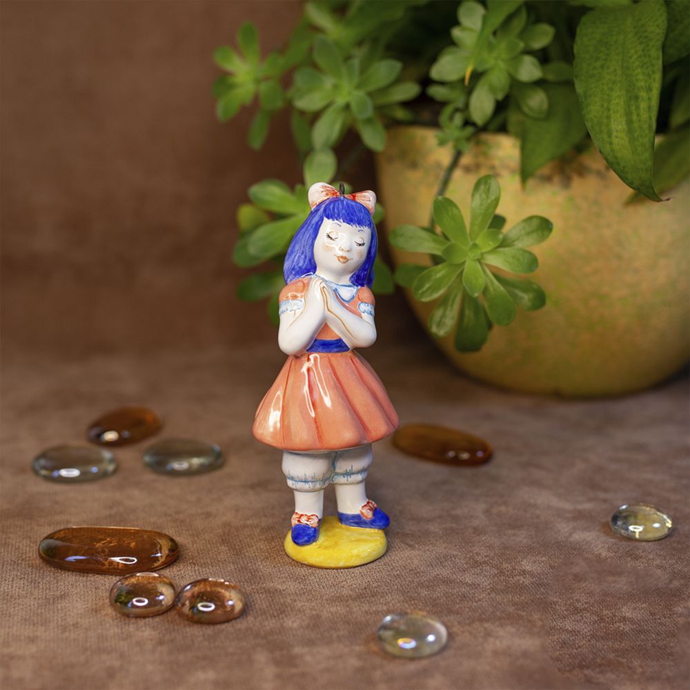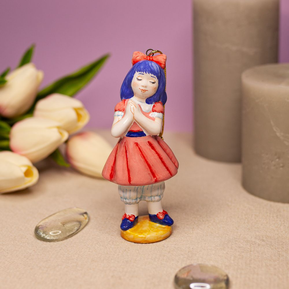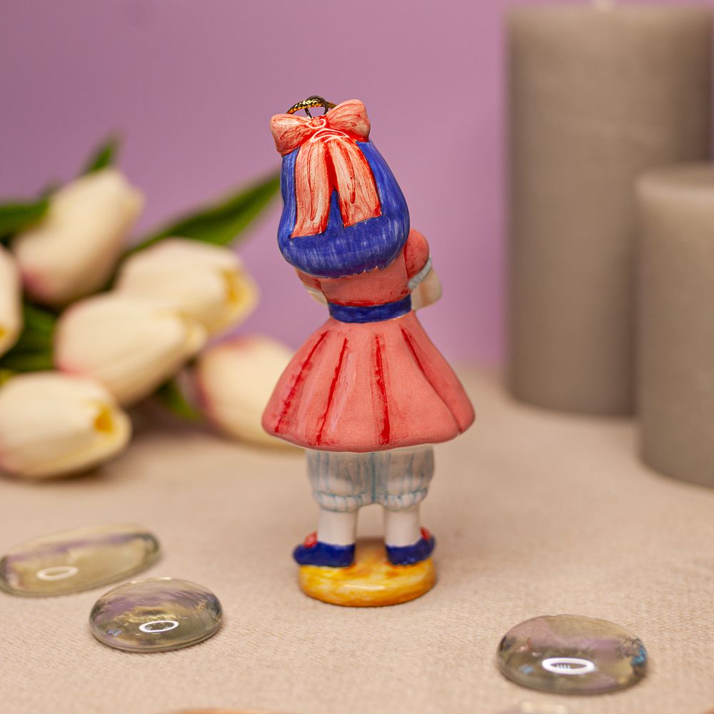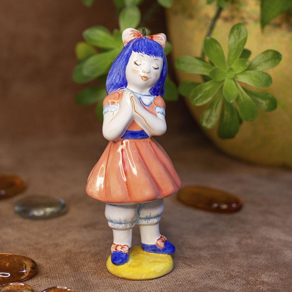 Изделие представляет фигурку куклы Мальвины, героини известной сказки. Она актриса театра, которым руководит синьор Карабас-Барабас. Публику приводят в восторг ее талант и образ. Прическа привлекает всеобщее внимание необычным голубым цветом волос, заставляя проникаться симпатией. Мальвина – обладательница голубых глаз, длинных ресниц и аккуратного носика, фарфоровое личико украшает приятный румянец. Изделие интересно для оформления интерьеров, будет эксклюзивным подарком и замечательным коллекционным изделием.