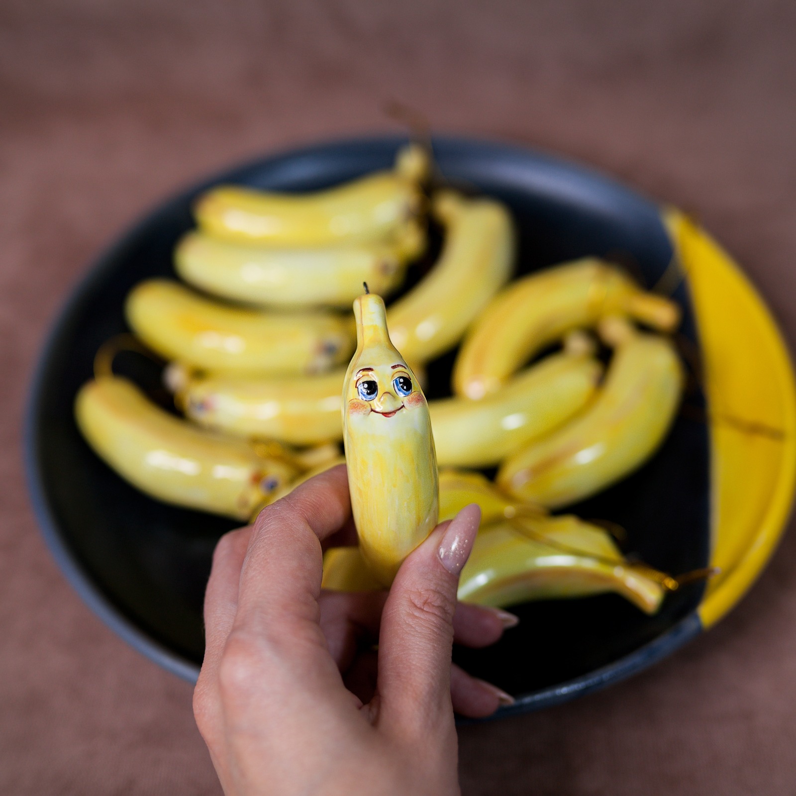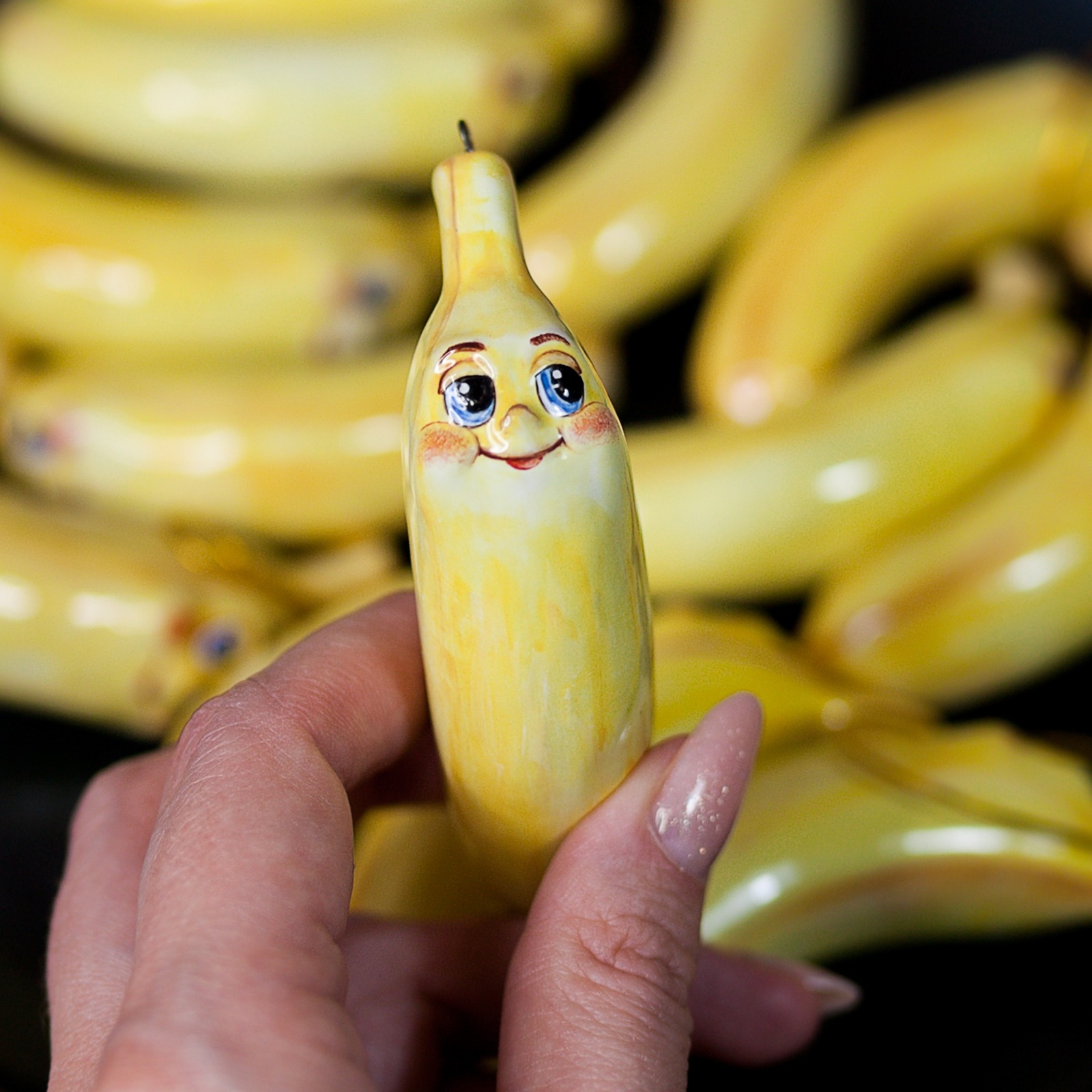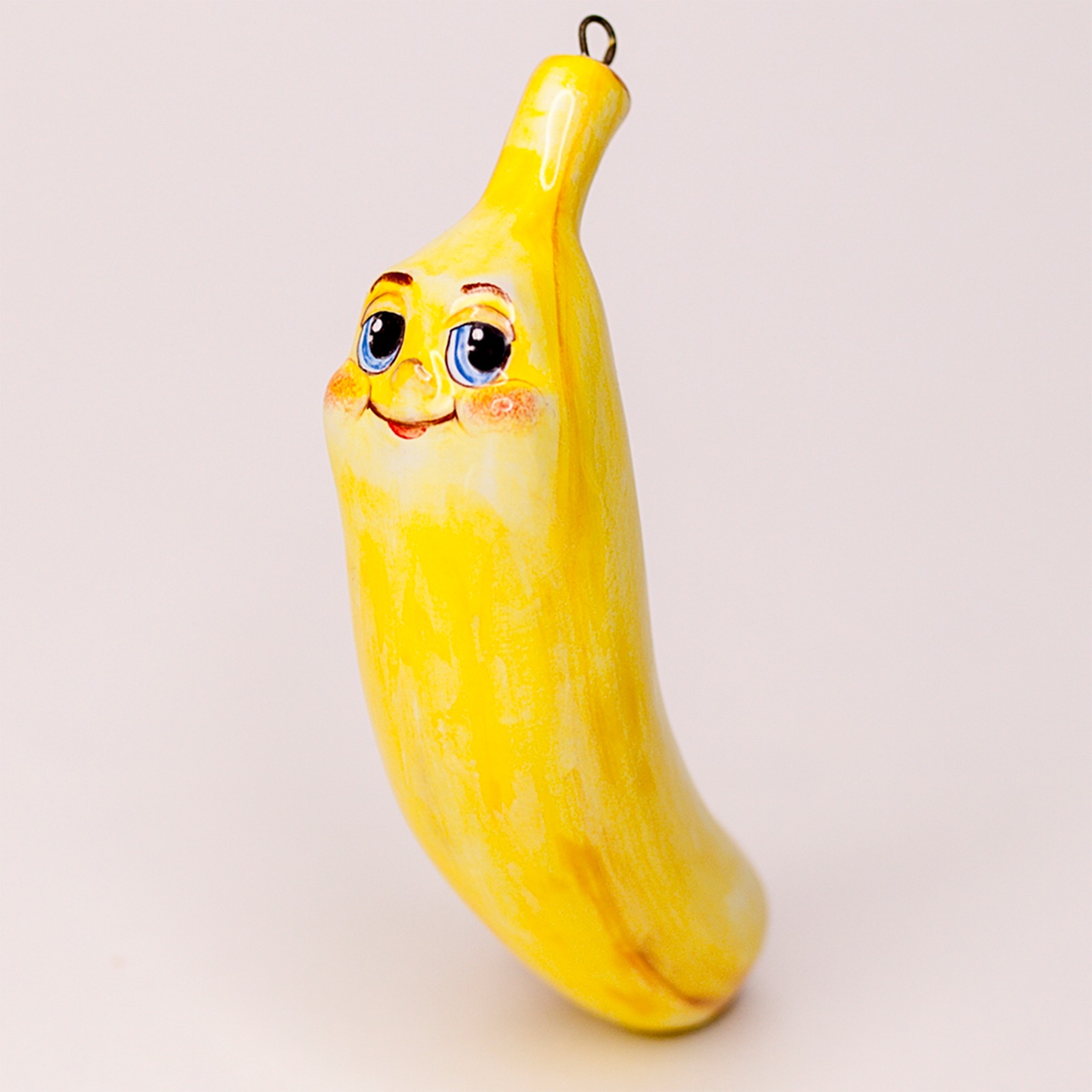Изделия ручной работы входят в коллекцию “Фруктовые эмоции” и представляет собой жизнерадостный, улыбающийся маленький банан. Художник воспользовался всей роскошной палитрой современных керамических глазурей, чтобы передать непосредственность этого малыша . Данное изделие станет украшением вашего интерьера, создаст настроение, будет чудесным подарком. Соберите всю коллекцию ярких, красивых, эмоциональных овощей и фруктов. Изделия из этой коллекции могут быть также использованы для создания эффектных интерьеров в кафе, ресторанах, барах, для украшения новогодней ели или как модель на уроках рисования.