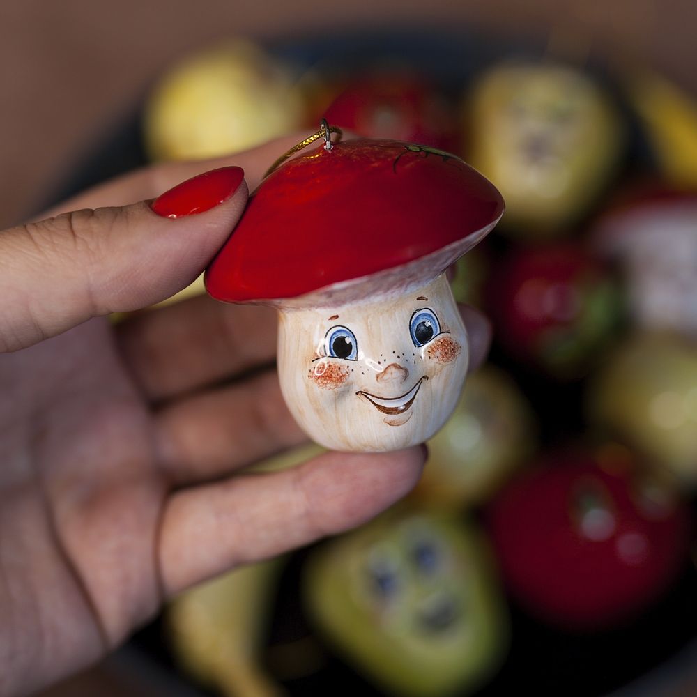 Изделия ручной работы входят в коллекцию “Фруктовые эмоции” и представляет обаятельного, смущенно улыбающегося грибочка. Художник воспользовался всей роскошной палитрой современных керамических глазурей, чтобы передать непосредственность этого малыша . Данное изделие станет украшением вашего интерьера, создаст настроение, будет чудесным подарком. Соберите всю коллекцию ярких, красивых, эмоциональных овощей и фруктов. Изделия из этой коллекции могут быть также использованы для создания эффектных интерьеров в кафе, ресторанах, барах, для украшения новогодней ели или как модель на уроках рисования.