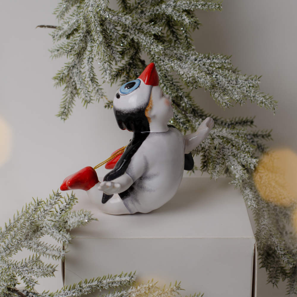Яркий костюмчик выполнен художником с детализацией, передающей мягкую фактуру ткани. Этот маленький герой станет не просто новогодним украшением, но и источником радости, возвращаясь вас каждый сезон в праздничное настроение.