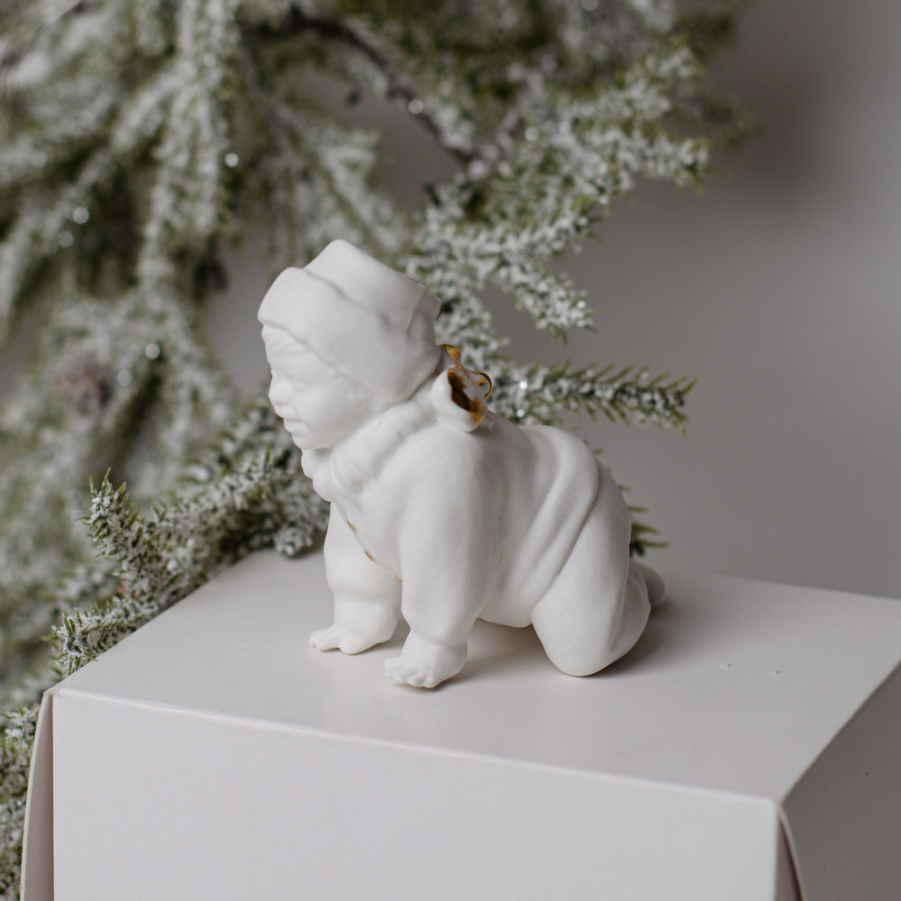 Фигурка “Малыш Снегурочка”, входит в состав коллекции “Малыши в костюмах”. Изготовленная из фарфора-бисквита и вручную расписанная золотом, она излучает тепло и праздничное настроение.