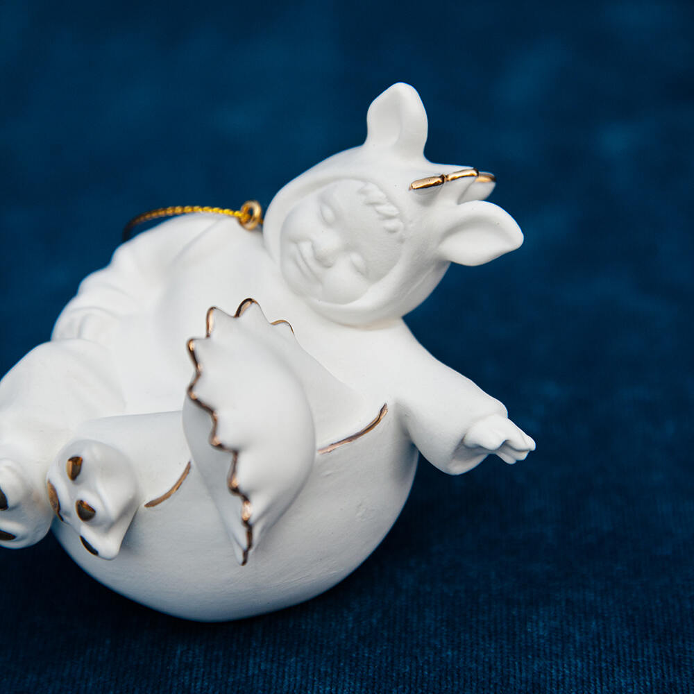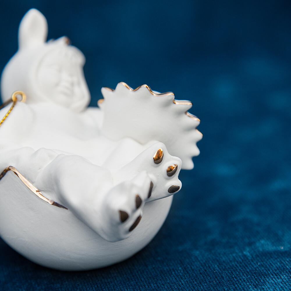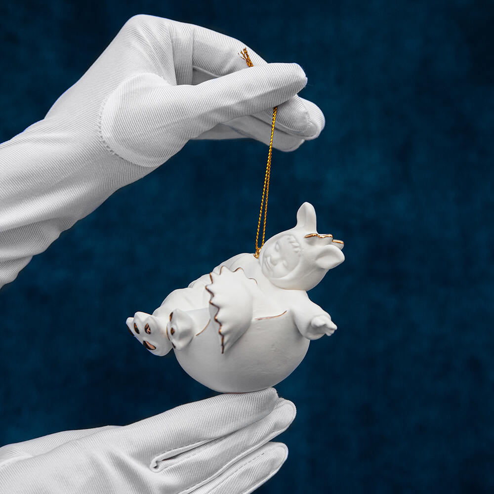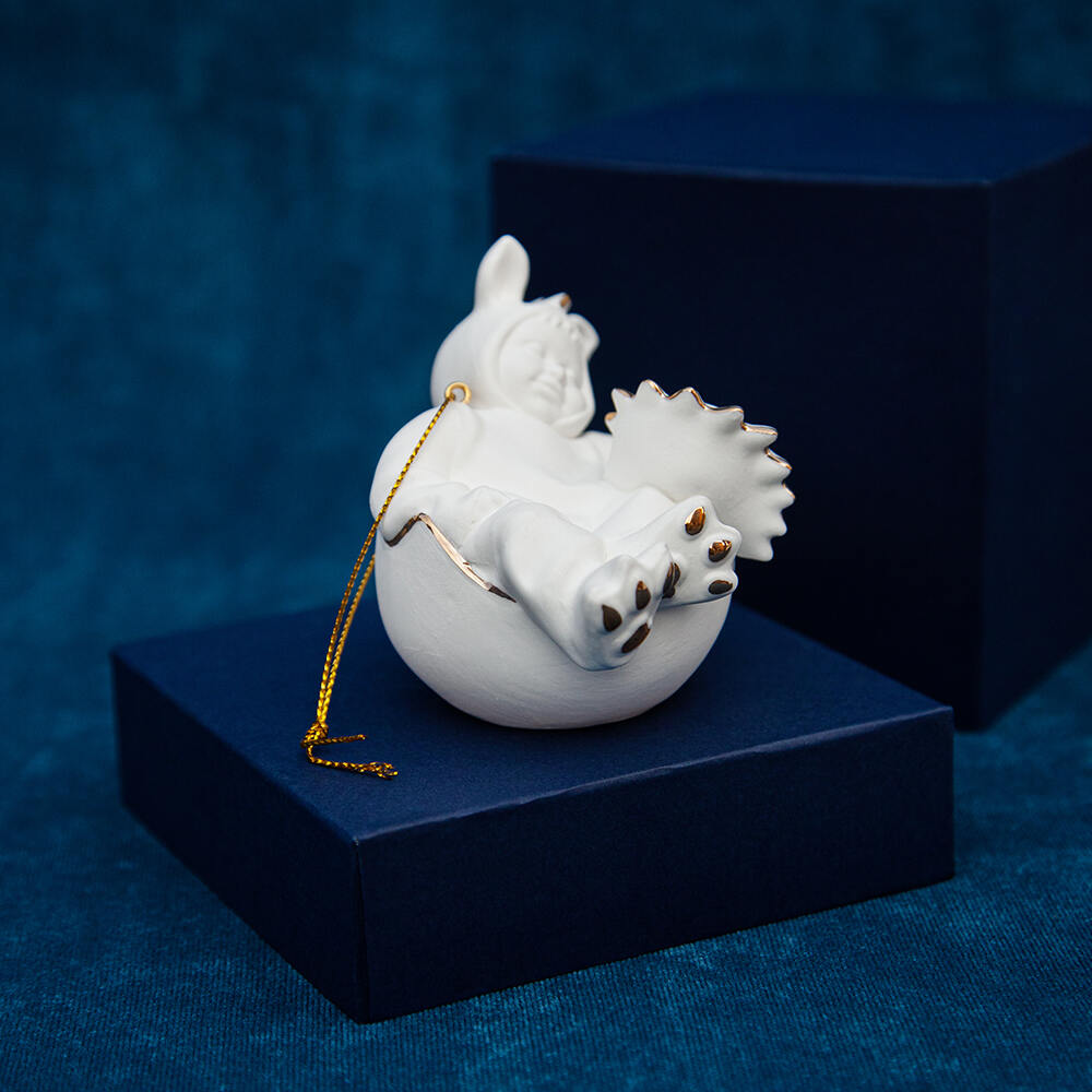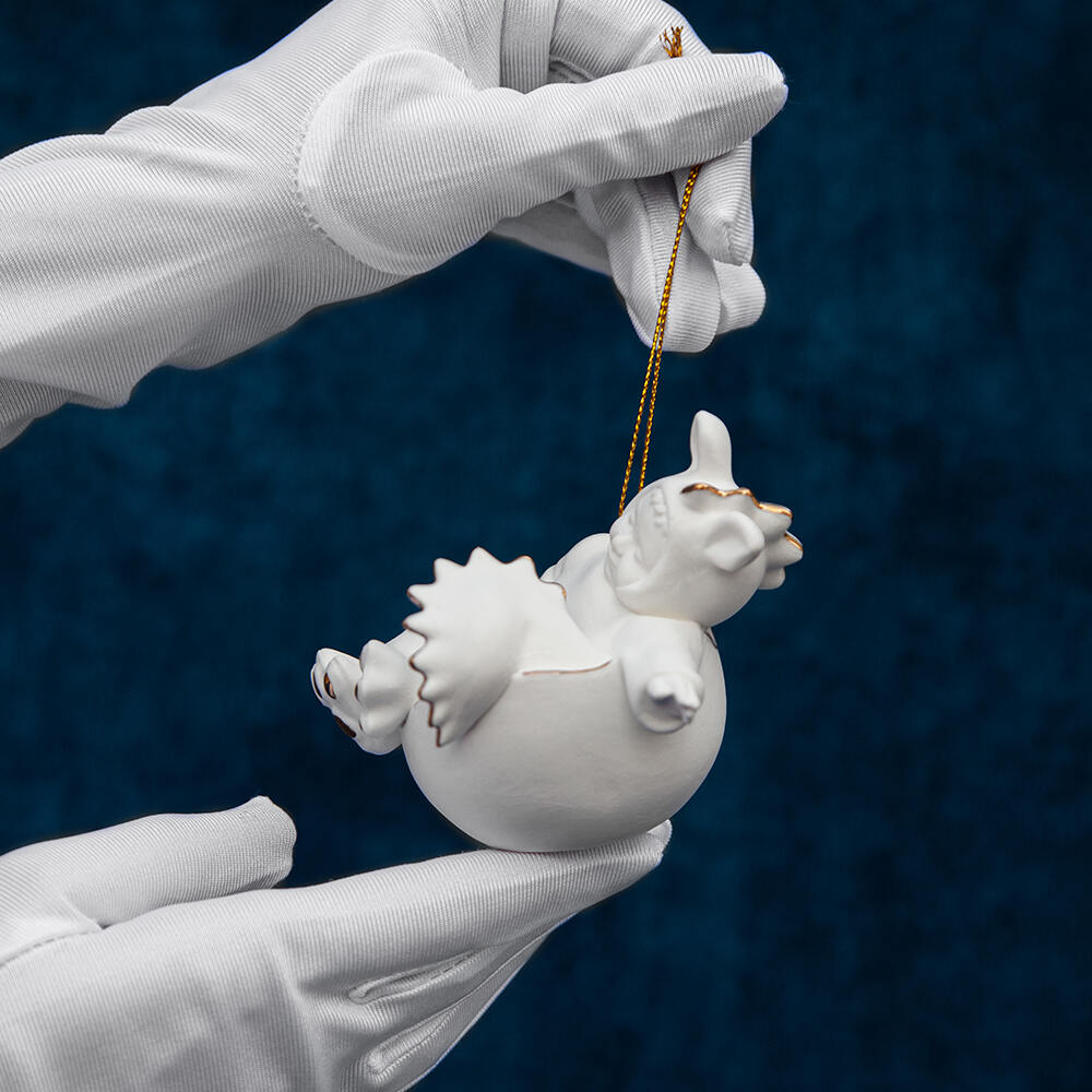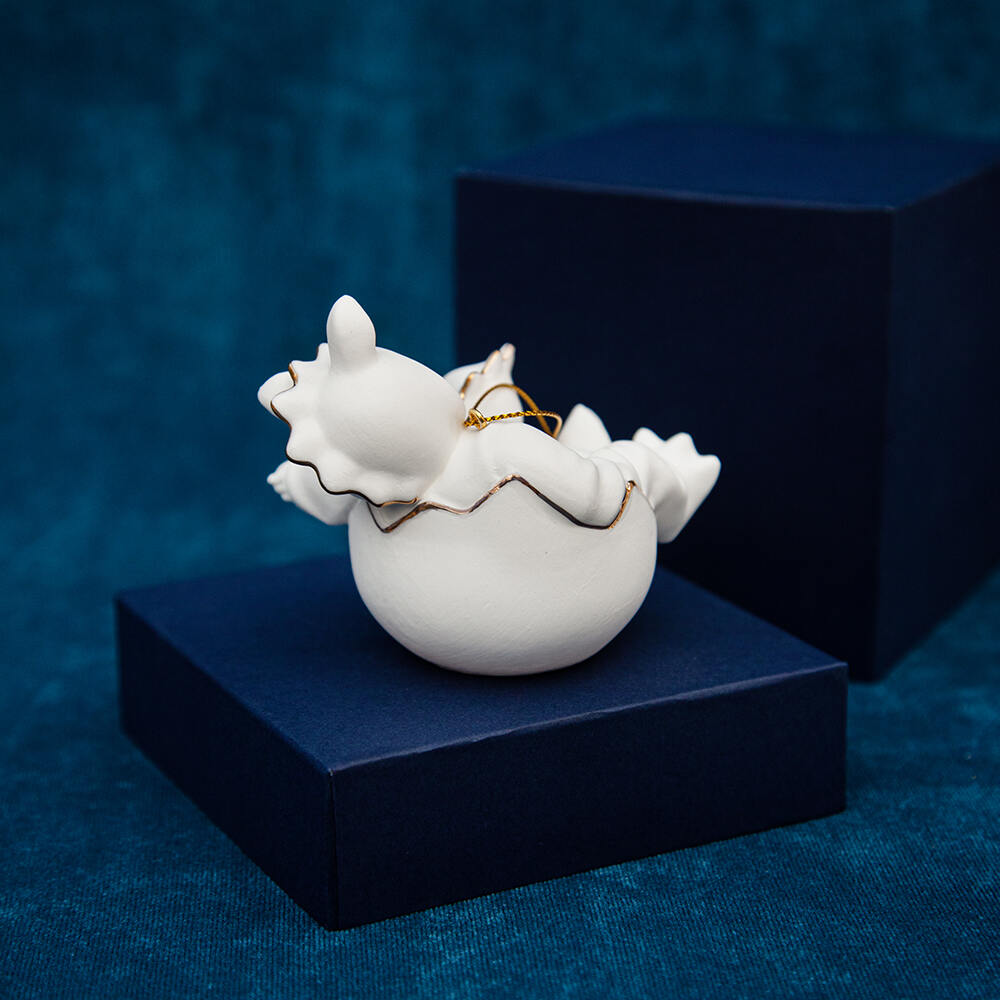 Ёлочная игрушка малыш-Дракоша малый (фарфор, золото)
