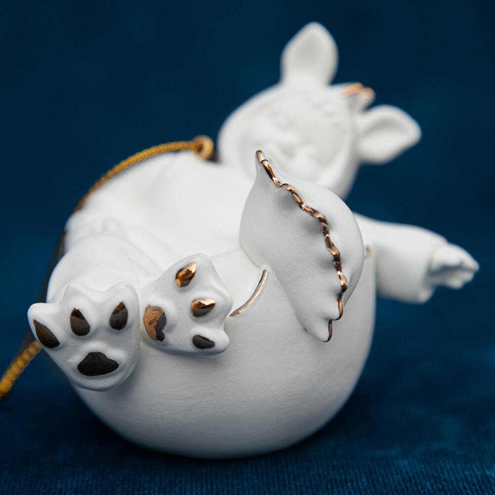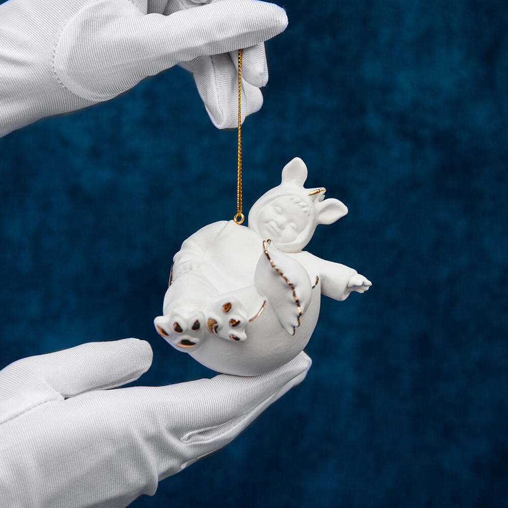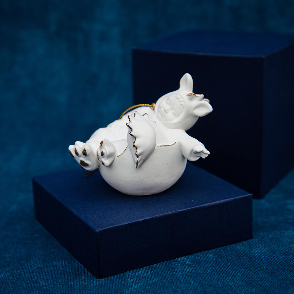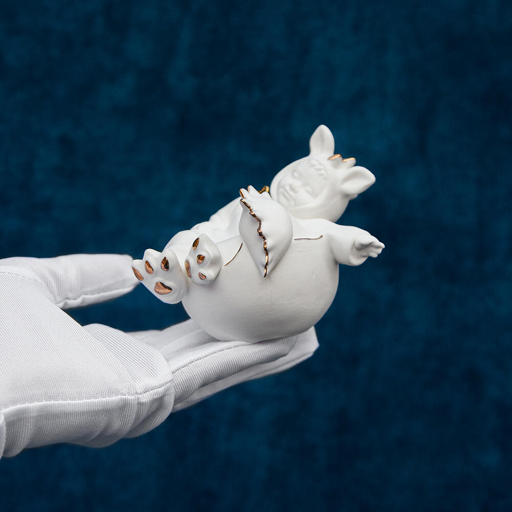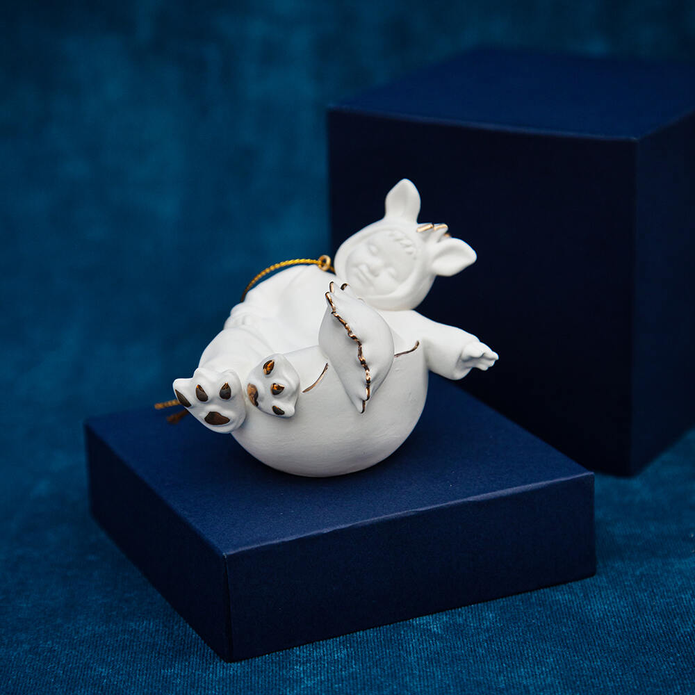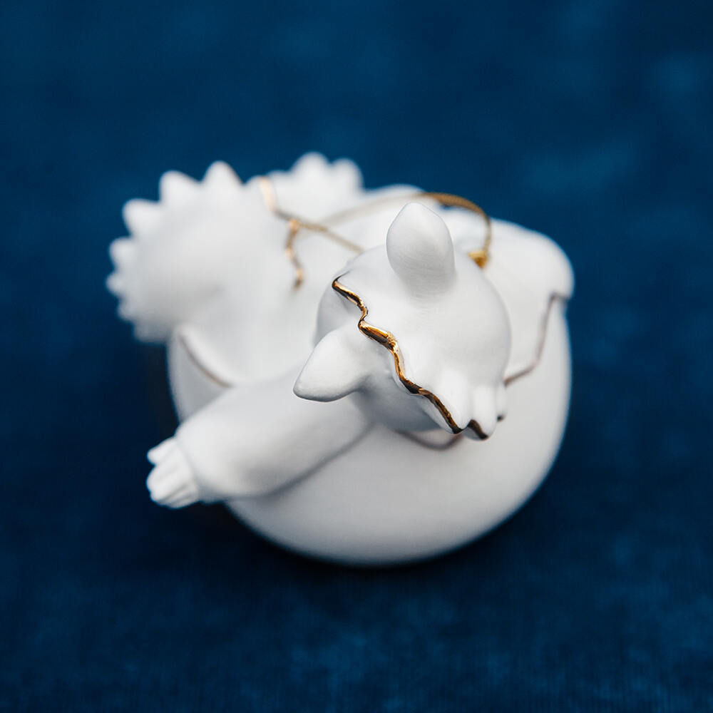 Ёлочная игрушка малыш-Дракоша малый (фарфор, золото)