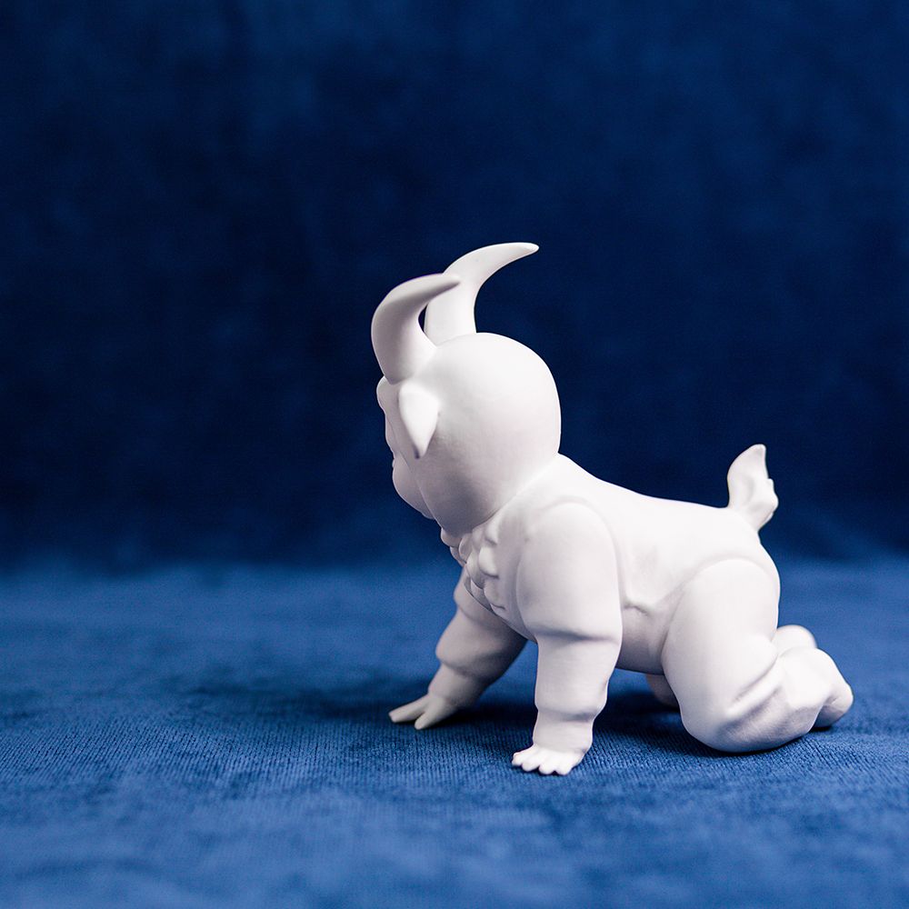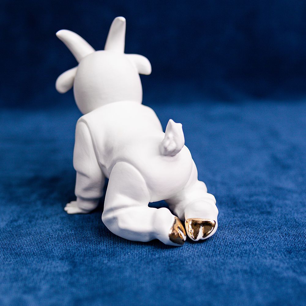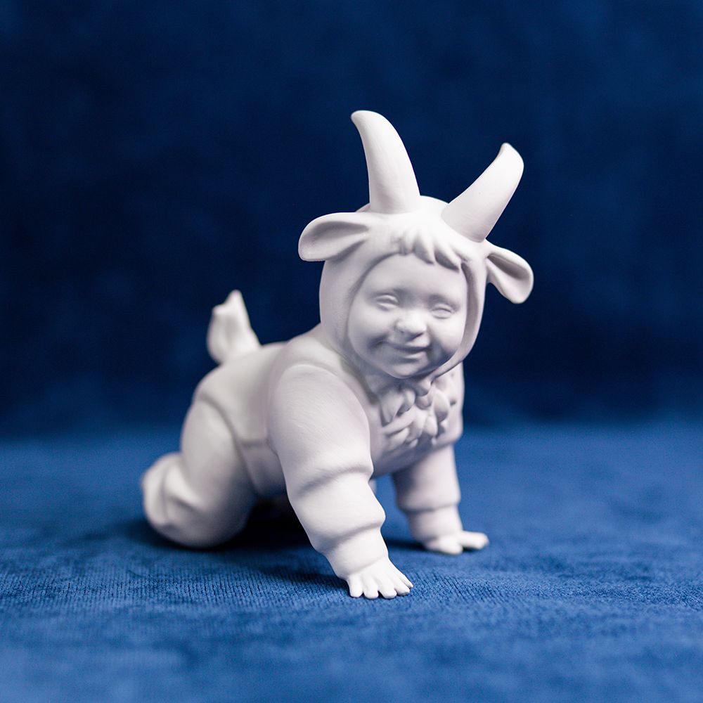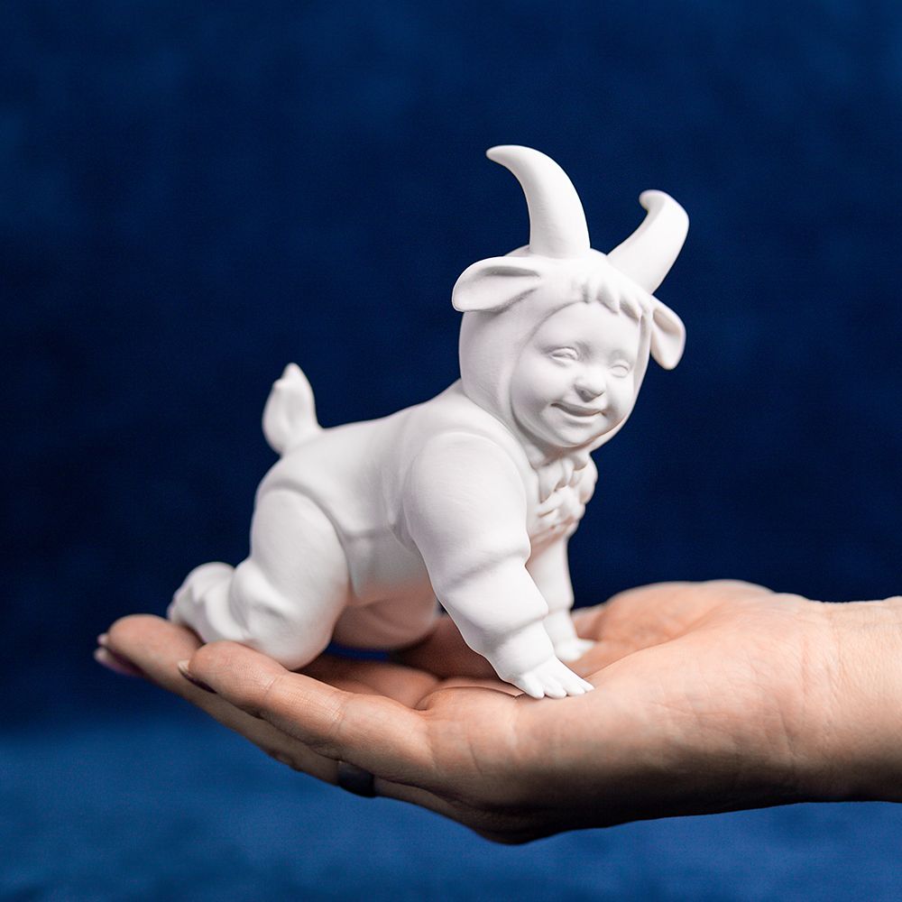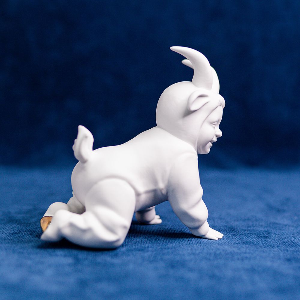 Эксклюзивное изделие. Кроха, который только научился ползать, в костюме козленка выглядит живо и непосредственно. Эта фигурка станет прекрасным подарком на рождение ребенка и Новый год.