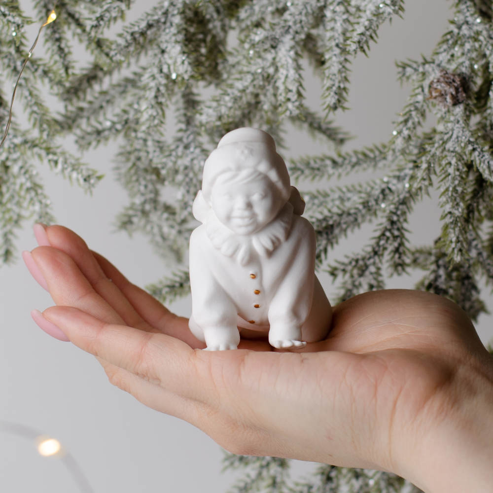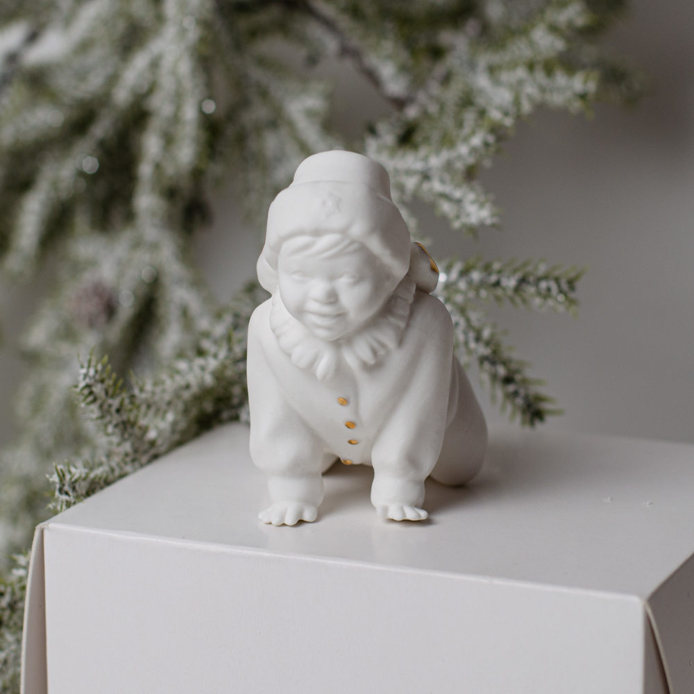 Фигурка малышки в костюме Снегурочки выполнена из благородного фарфора-бисквита с позолотой – классическим украшением изделий из данного материала. Маленький Снегурочка озорливо смотрит на вас своими большими глазками и будто приглашает вас на сказочный праздник. Золотые пуговки на шубке, добавляет изысканности и роскоши этому изделию. Фигурка станет уникальным и запоминающимся подарком на новогодние праздники и достойным экспонатом для коллекционеров фарфоровых изделий.