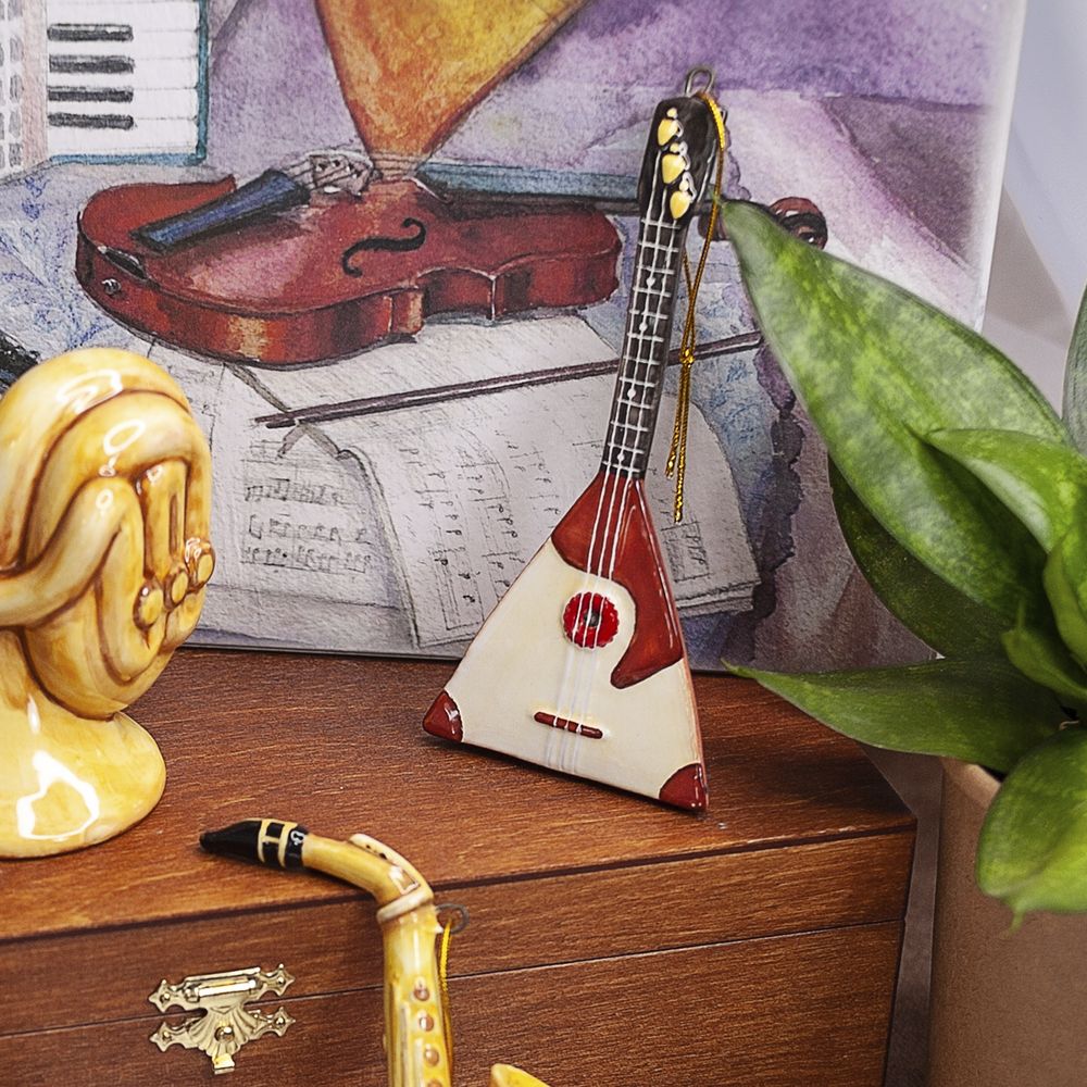 Ёлочная игрушка Балалайка ручной работы, входит в коллекцию Музыкальные инструменты. Балалайка – один из символов русского музыкального творчества. Художник расписал этот незатейливый инструмент, у которого “немудренных” три струны, насыщенными красками. Балалайка станет прекрасным подарком людям, имеющим отношение к музыке, а также тем, кому вы хотите передать положительные эмоции и радость, будет чудесным украшением новогодней елочки, порадует коллекционеров.