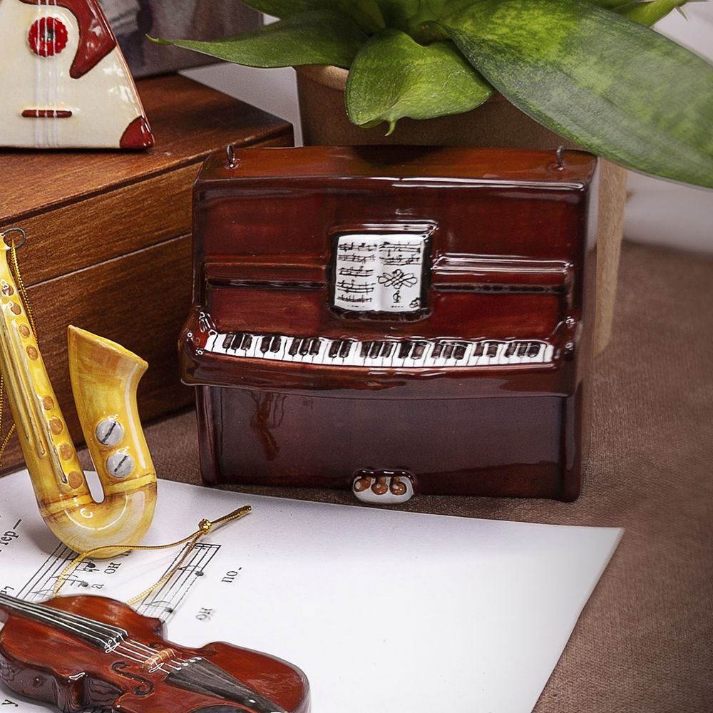 Ёлочная игрушка Фортепиано ручной работы, входит в коллекцию Музыкальные инструменты. Художник виртуозно изобразил музыкальный инструмент с раскрытыми нотами, в ожидании музицирования. Переливы лакированного дерева с мягким блеском, строгая элегантность, отношение к игре на фортепиано как способу размышления и проявлению своих чувств. Фортепиано романтичный образ, он несет радость и вдохновение. Фортепиано станет прекрасным подарком людям, имеющим отношение к музыке, а также тем, кому вы хотите передать положительные эмоции и радость, будет чудесным украшением новогодней елочки, порадует коллекционеров.