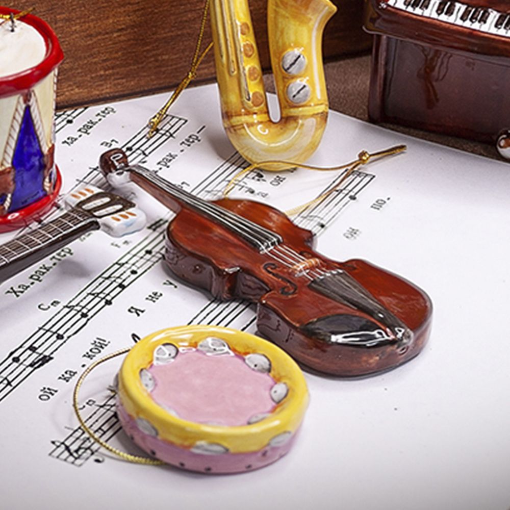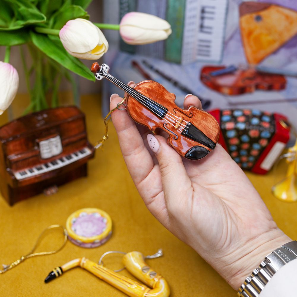 Подвес “Скрипка”, выполнен в технике майолика, украшен ручной художественной росписью и входит в эксклюзивную коллекцию “Музыкальные инструменты”. Скрипка – инструмент, способный звучать трепетно и нежно, либо грустно и глубоко, ведь он способен вызвать мистические переживания и перенести в другой, удивительный мир. Подвес станет прекрасным украшением для новогодней елки, прекрасным подарком для ценителей классической музыки и идеальным дополнением к интерьеру как дома, так и музыкального салона. Он обязательно порадует как коллекционеров, так и тех, кто ценит ручную работу и уникальные предметы.