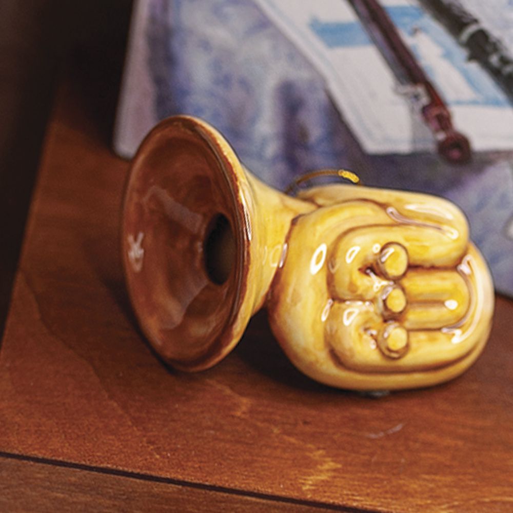 Ёлочная игрушка Труба (большая) ручной работы, входит в коллекцию Музыкальные инструменты. Этот музыкальный инструмент на вашей елочке привнесёт яркие ноты торжественного настроения. Труба большая производит сильное впечатление сложной формой и грандиозным величием. В сказках герои проходят с ее помощью испытания славой, богатством, властью. Труба большая привлечет внимание, станет прекрасным подарком людям, имеющим отношение к музыке, а также тем, кому вы хотите передать положительные эмоции и радость, будет чудесным украшением новогодней елочки, порадует коллекционеров.