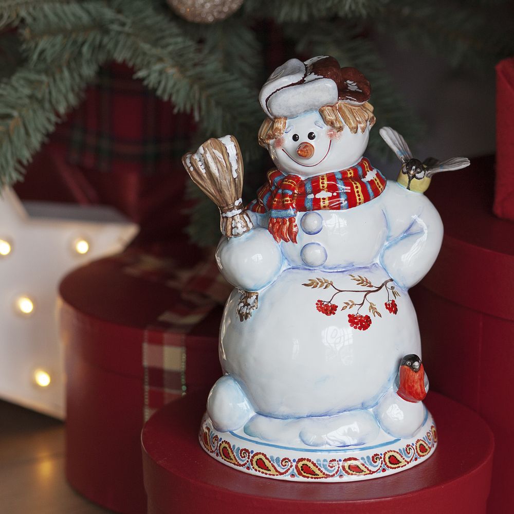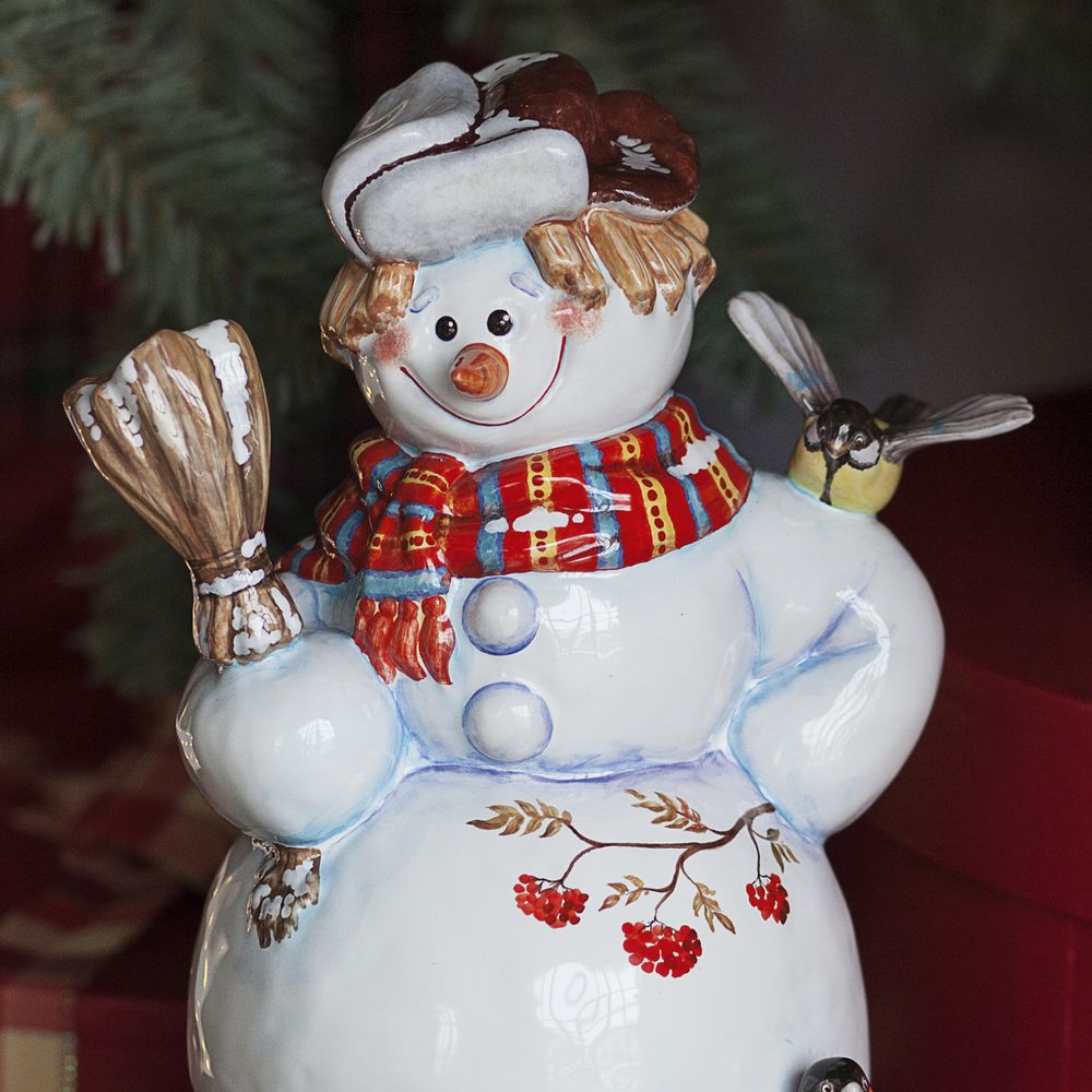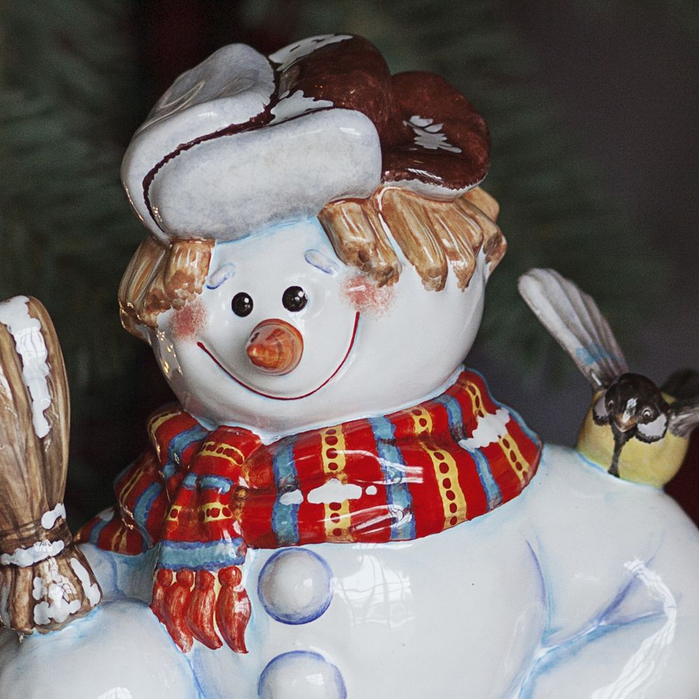 Это изделие ручной работы входит в коллекцию «Новый год» и представляет собой фигурку обаятельного бесшабашного Снеговика в шапке ушанке, ярком клетчатом шарфе и с метлой в руке. Прилетевшие птички составляют компанию этому веселому Снеговику. Композиция смотрится ярко и эффектно, она принесет вам радость и обещание зимней сказки, будет украшением вашего дома, замечательным подарком вашим друзьям и близким, который сохранит дивные мгновения зимнего торжества на долгие годы.