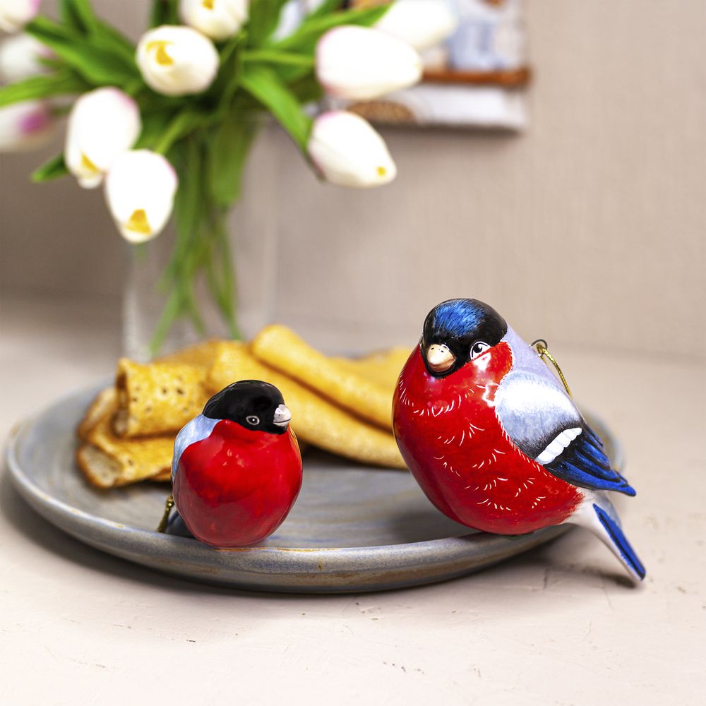 Подвес “Снегирь” выполнен в технике майолика и украшен ручной художественной росписью. Снегирь является символом мудрости, спокойствия и терпения, из-за их уникальной способности переживать даже самые лютые холода. Эту птичку вряд-ли заметишь летом, а зимой он показывает себя во всей красе. Снегирь традиционный персонаж зимних рассказов и новогодних открыток, а еще символ русской зимы, и привлекает внимание своей красотой и яркостью. Алая грудка и изящные детали делают эту фигурку эффектным украшением. Снегирь прекрасно впишется как украшение для новогодней елки, создавая атмосферу праздника и уюта. Это изделие может стать прекрасным подарком для близких, коллег или друзей, радуя их своей красотой и оригинальностью. Кроме того, оно будет радовать коллекционеров уникальными и ручной работы предметами.