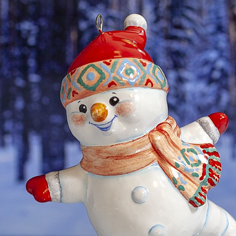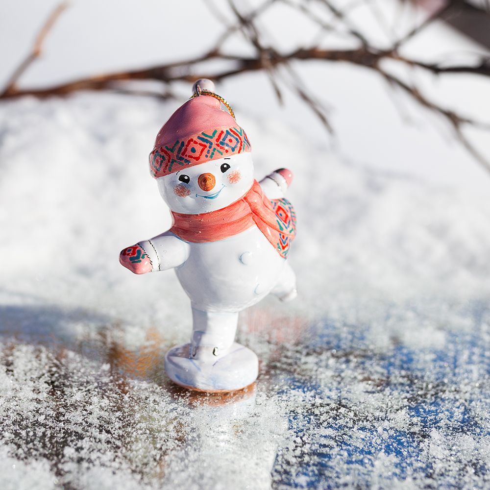Фигурка “”Снеговик – конькобежец”” изготовлена в технике майолика и украшена ручной росписью. Художником искусно переданы эмоции малыша, радость от зимних приключений и восторг на лице, это придает игрушке непосредственность и яркость. Такая фигурка станет чудесным украшением для новогодней елки и милым подарком для всех любителей ручной работы и оригинальных новогодних украшений.”””