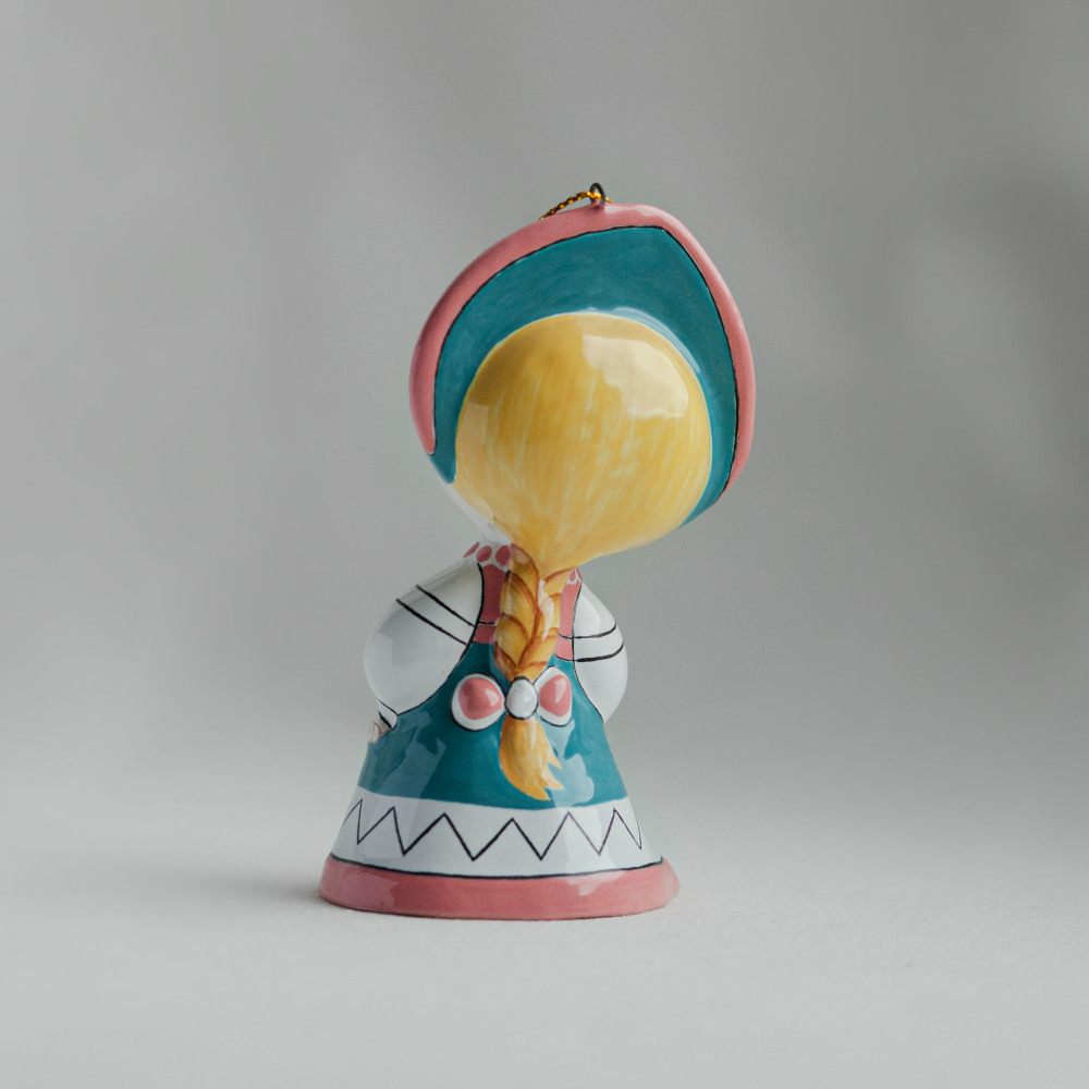 Фигурка выполнена в технике майолика в виде колокольчика, с любовью и вниманием к каждой детали. Ручная роспись придает ей неповторимый характер, а форма колокольчика добавляет нотку игривости и волшебства. Василиса, олицетворяющая мудрость и доброту, готова рассказать вам свою историю и преподать урок.