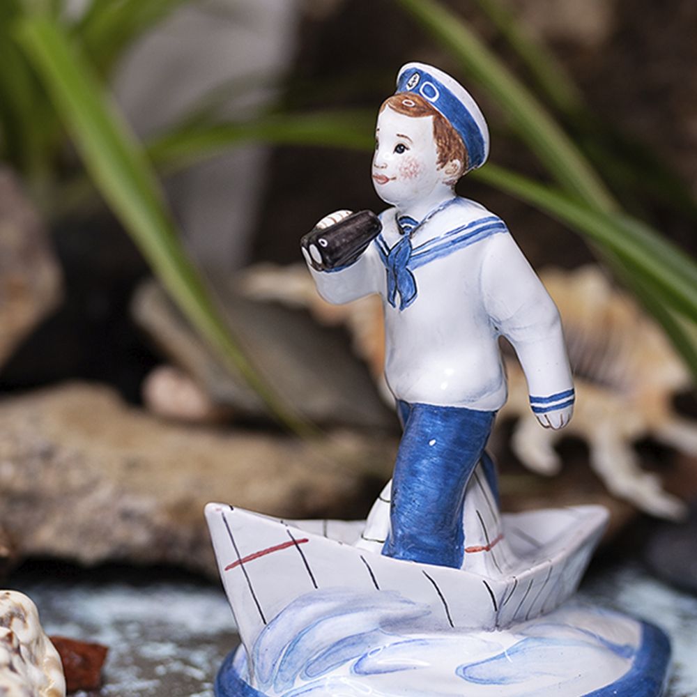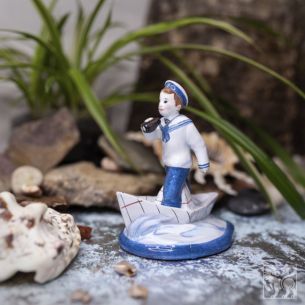 Это изделие ручной работы входит в коллекцию “Выбор профессии”. Профессия моряка в книгах всегда окутана ореолом романтизма, славы и мечты! Морской воздух, свежий ветер и манящая водная гладь, полная тайн и приключений, она всегда привлекала смелых и отважных. Наш морячок готов пуститься в самое опасное плавание и стать настоящим морским волком. Этот сувенир внесет особый акцент в интерьер, станет желанным подарком, порадует людей, связанных с флотом, поможет выразить благодарность профессионалам. Данное изделие будет интересно и коллекционерам.