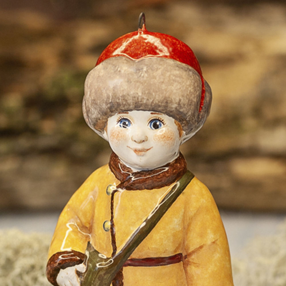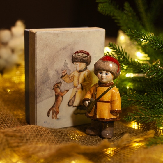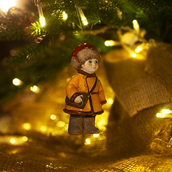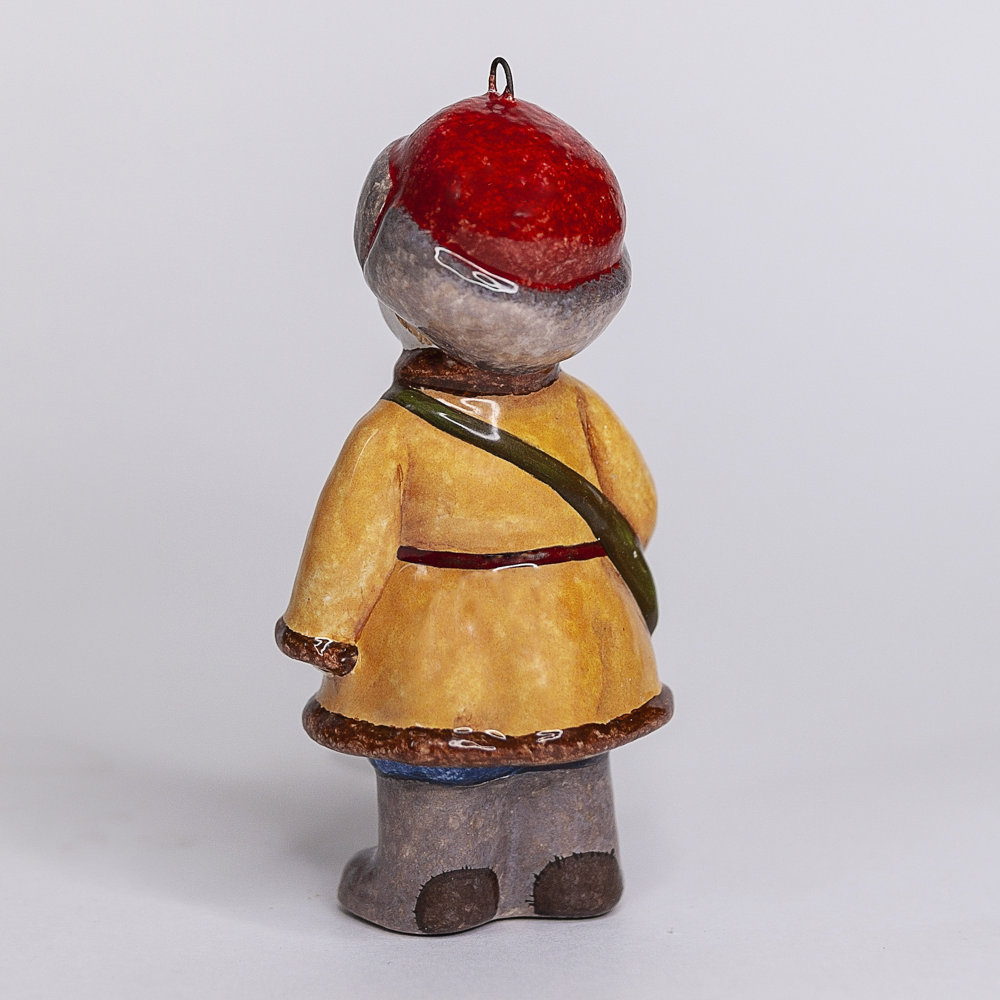 Эксклюзивное изделие ручной работы входит в коллекцию «Зима пришла» и представляет собой фигурку мальчика в полушубке, валенках, меховой шапке с сумкой через плечо. Художником искусно переданы целеустремленность и твердость характера школьника, который ради учебы готов преодолеть и мороз, и метель. Игрушка смотрится ярко и непосредственно, будет чудесным украшением новогодней елочки, милым подарком и замечательно подойдёт для оформления интерьеров, порадует коллекционеров.