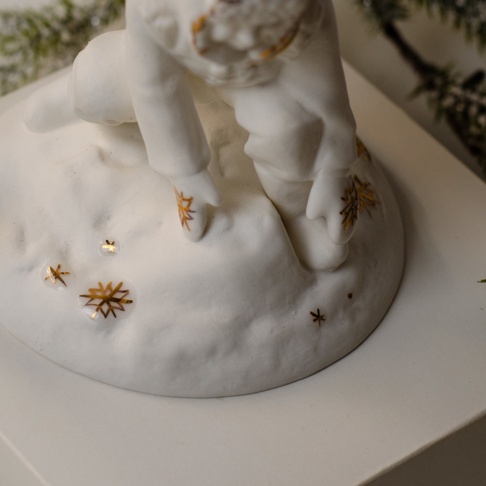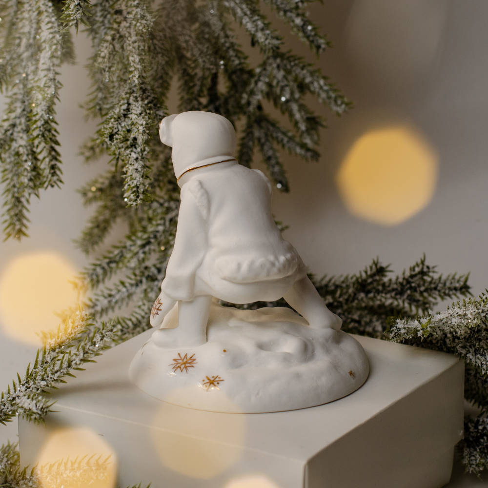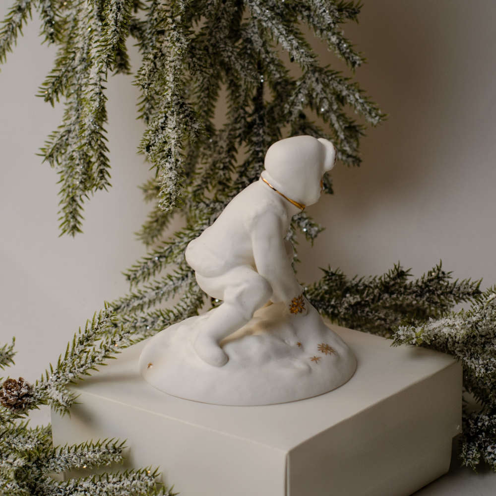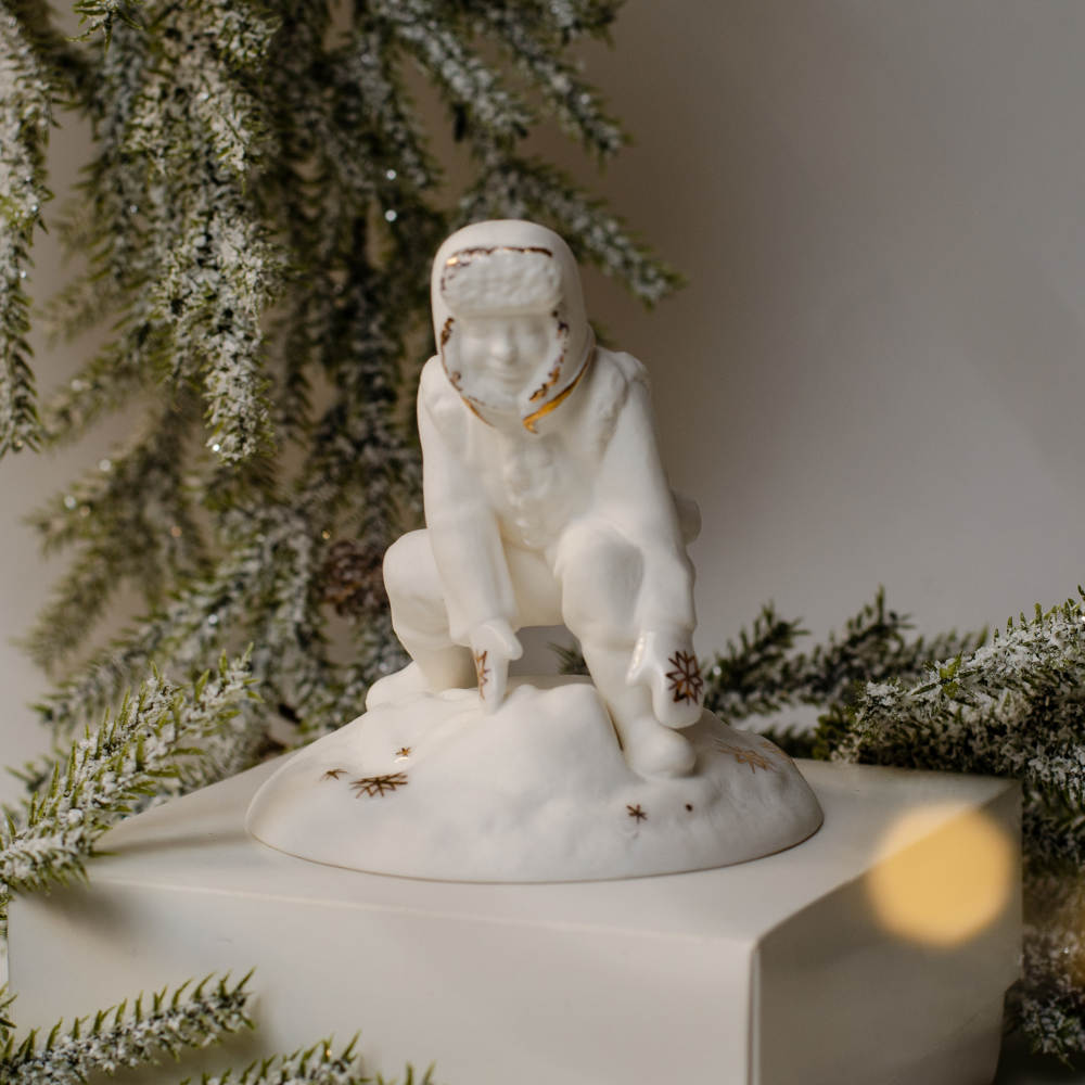 Фигурка “Мальчик и снежки” — эксклюзивное изделие ручной работы из бисквитного фарфора с художественной росписью золотом. Она входит в коллекцию “Зимние игры”, где каждая фигурка передает атмосферу детства, веселья и уюта домашнего тепла.