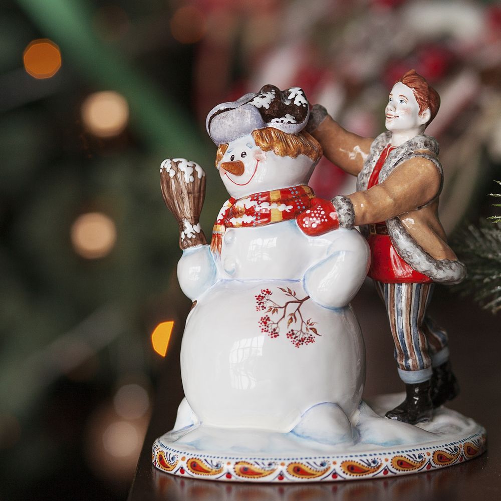 Фигурка “Мальчик и снеговик” выполнена в технике майолика, украшена ручной художественной росписью и входит в коллекцию “Зимние игры”. В сюжете представлен мальчик, который с восторгом лепит снеговика. Каждая деталь выполнена художником с особой тщательностью, что неизменно покорит сердце любого коллекционера изделий из керамики. Эта композиция станет эксклюзивным подарком к Новому году и Рождеству, украсит собой интерьер и создаст в доме радостную, праздничную атмосферу.