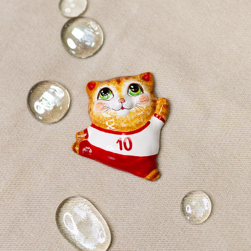 Изделие ручной работы представляет элемент декора, сувенир на магнитной основе, выполненный в виде плоской фигурки кота гимнаста в спортивной форма, готового ставить мировые рекорды. Данное изделие украсит интерьер, будет замечательным подарком на все случаи жизни.