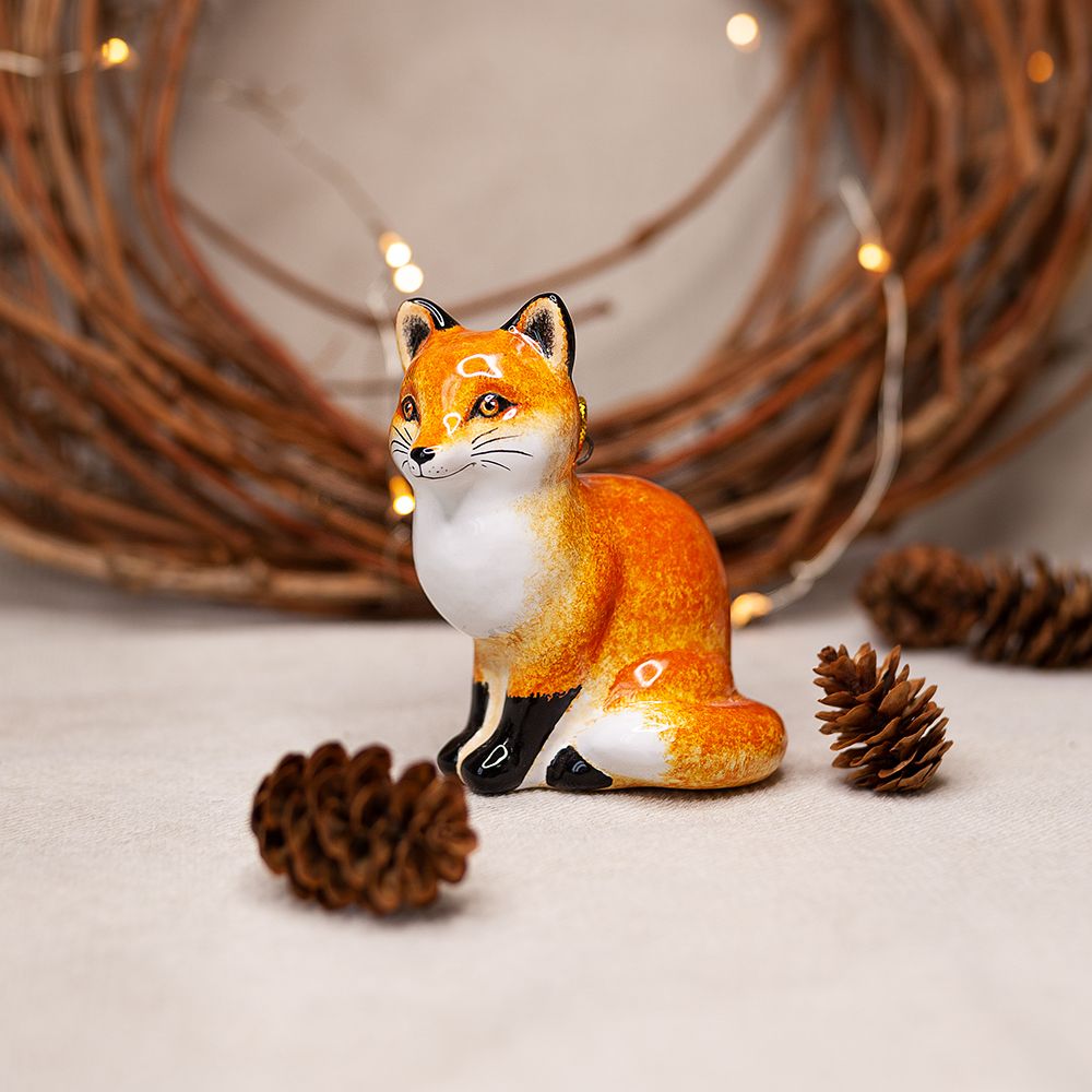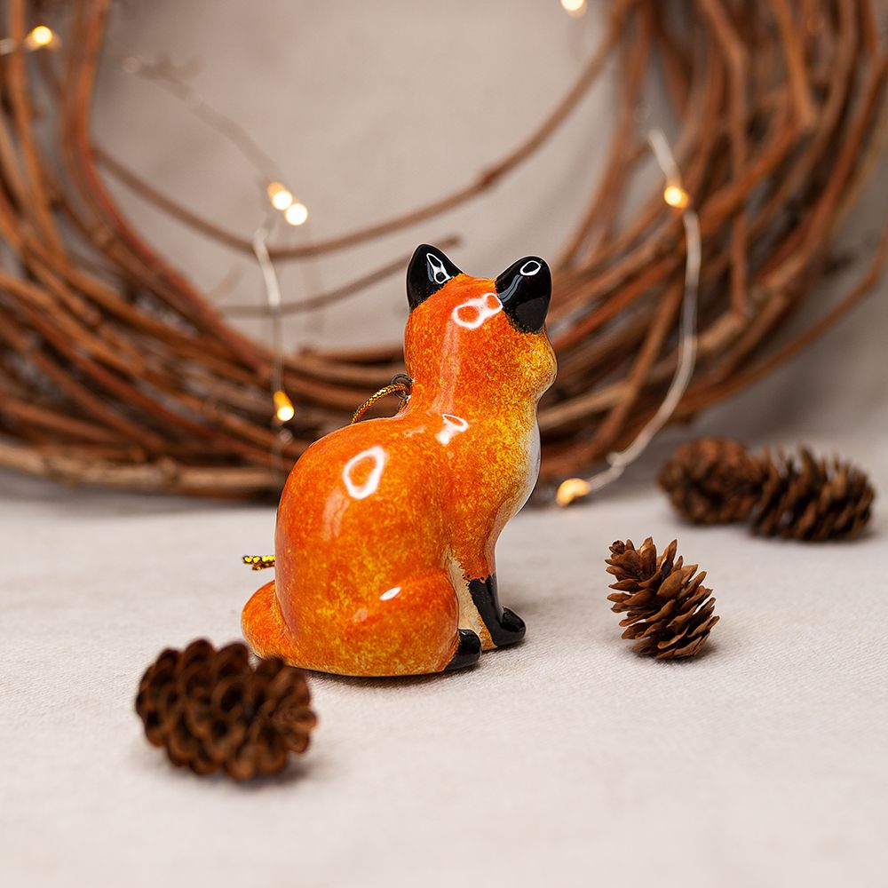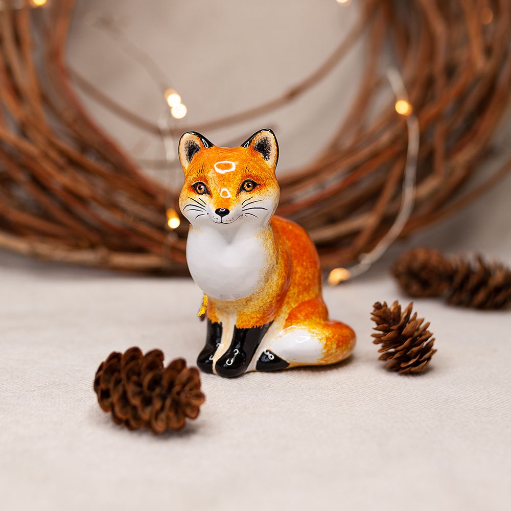 Это изделие ручной работы входит в коллекцию “Лесные зверята”. Лиса – очень красивое животное. У нее рыженькая шубка и такой же рыжий хвост. Хвост у лисы пушистый и роскошный. Лисий хвост служит хозяйке не только для красоты. Она заметает им свои следы. Рыжая лиса обитает в лесу. Лиса – хитрюга. В русских народных сказках она красива, обольстительна, красноречива, может легко притвориться беззащитной и слабой, манипулируя другими ради собственной выгоды. Милая елочная игрушка Лиса станет прекрасным украшением новогодней ели, подарком на Новый год, также порадует коллекционеров, соберите все игрушки из коллекции “Лесные зверята”.