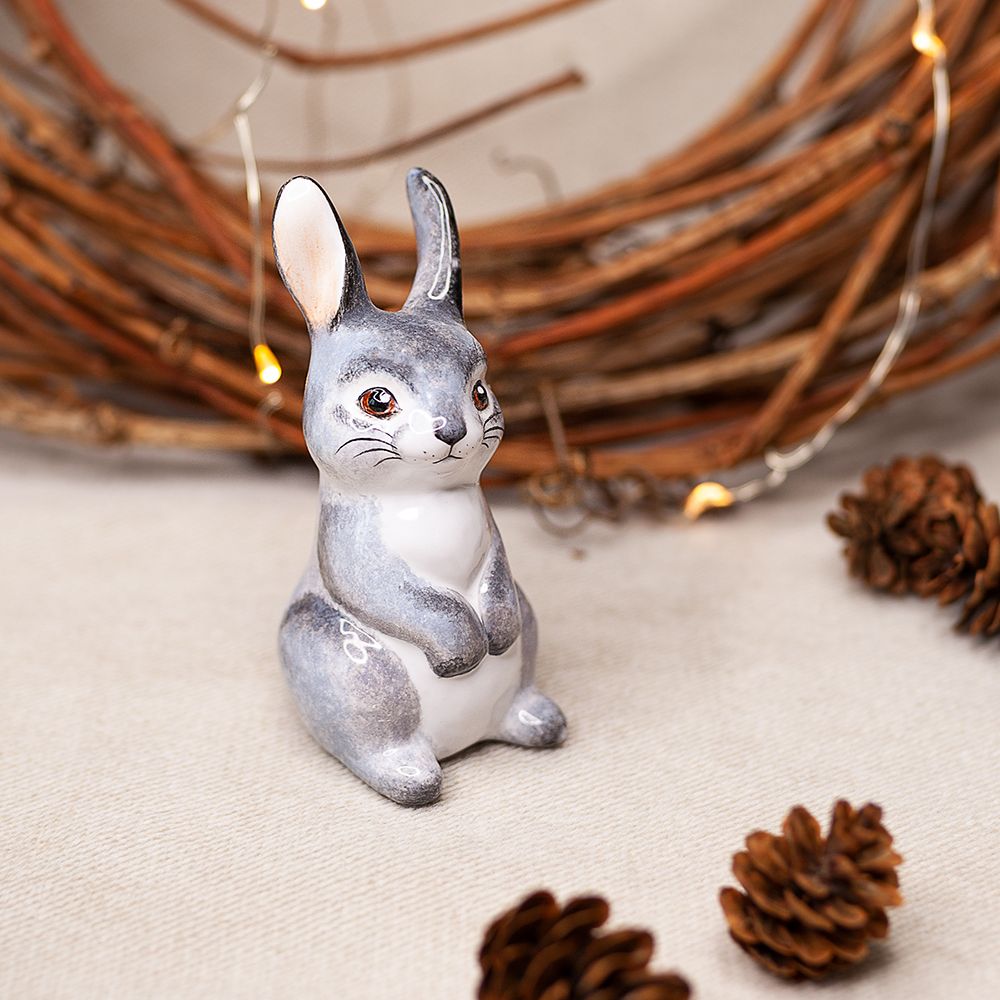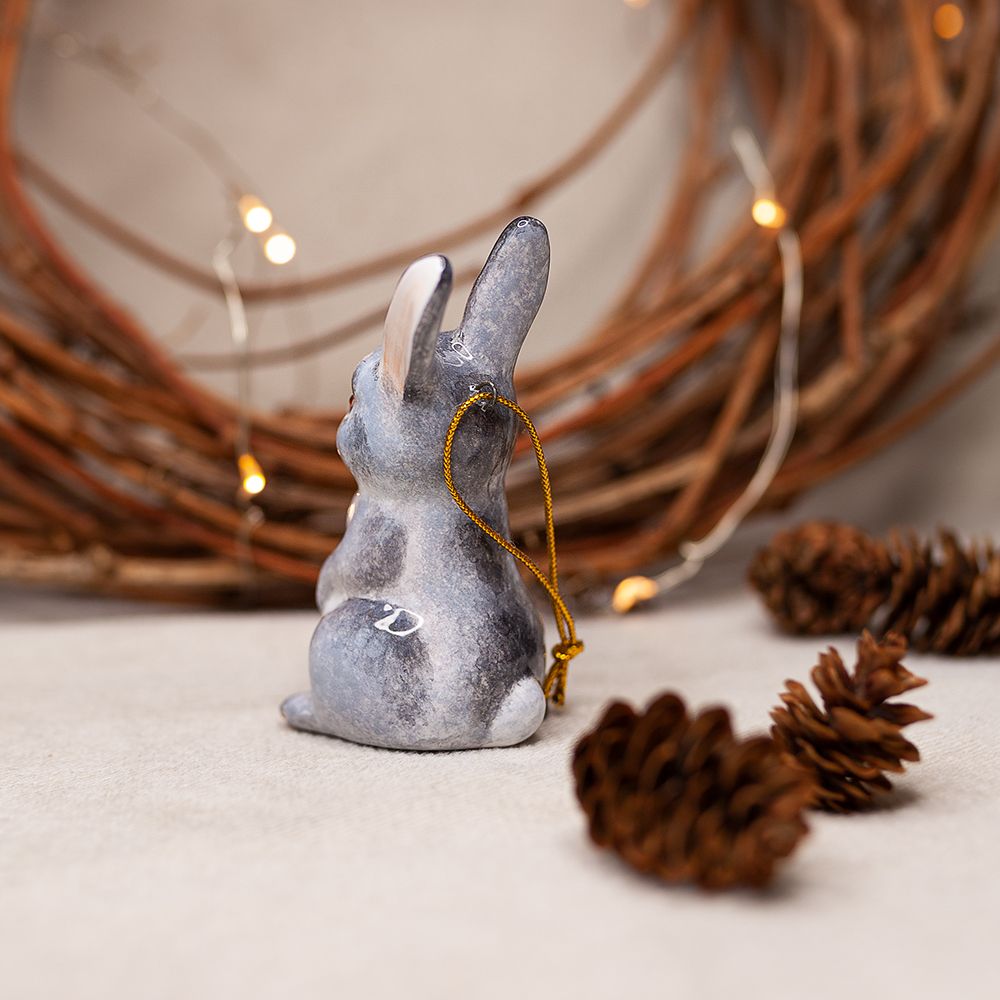 Это изделие ручной работы входит в коллекцию “Лесные зверята”. Заяц является символом плодовитости, а также залогом любви. В литературе зайцу характерны робость, житейская мудрость, быстрота, проворство, наивностью. Наш симпатичный любопытный зайчонок станет прекрасным украшением новогодней ели, подарком на Новый год, также порадует коллекционеров, соберите все игрушки из коллекции “Лесные зверята”.