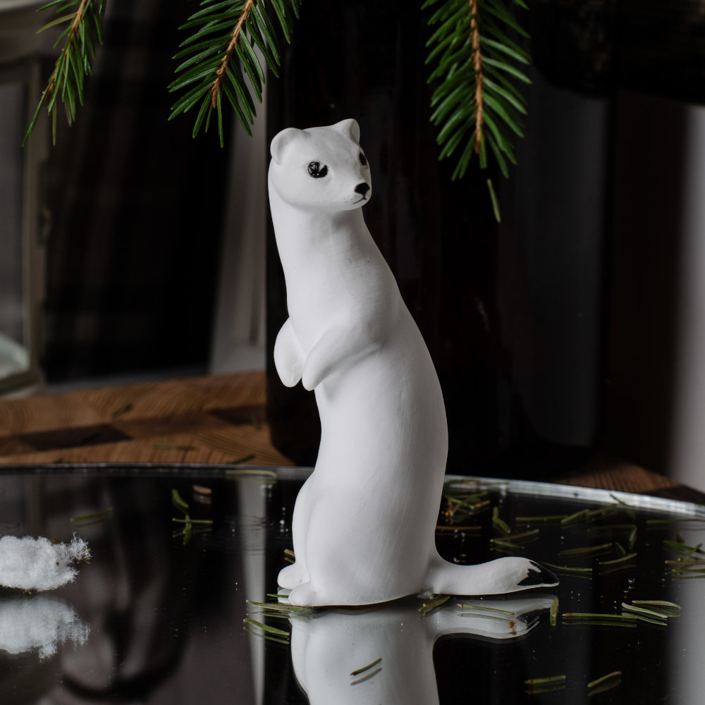 Фигурка горностая отражает всю изящность этого маленького ловкого охотника, который умеет танцевать и движется со скоростью ветра. Данное изделие оригинально украсить интерьер, будет интересным подарком и займет достойное место в собрании коллекционеров, может быть стильным украшением для новогодней елки.
