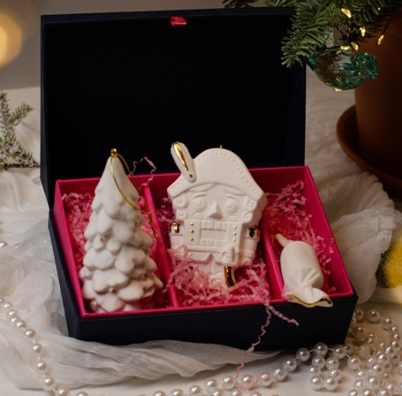 Набор 3 изделия ( елка , щелкунчик, конфетка) (фарфор)