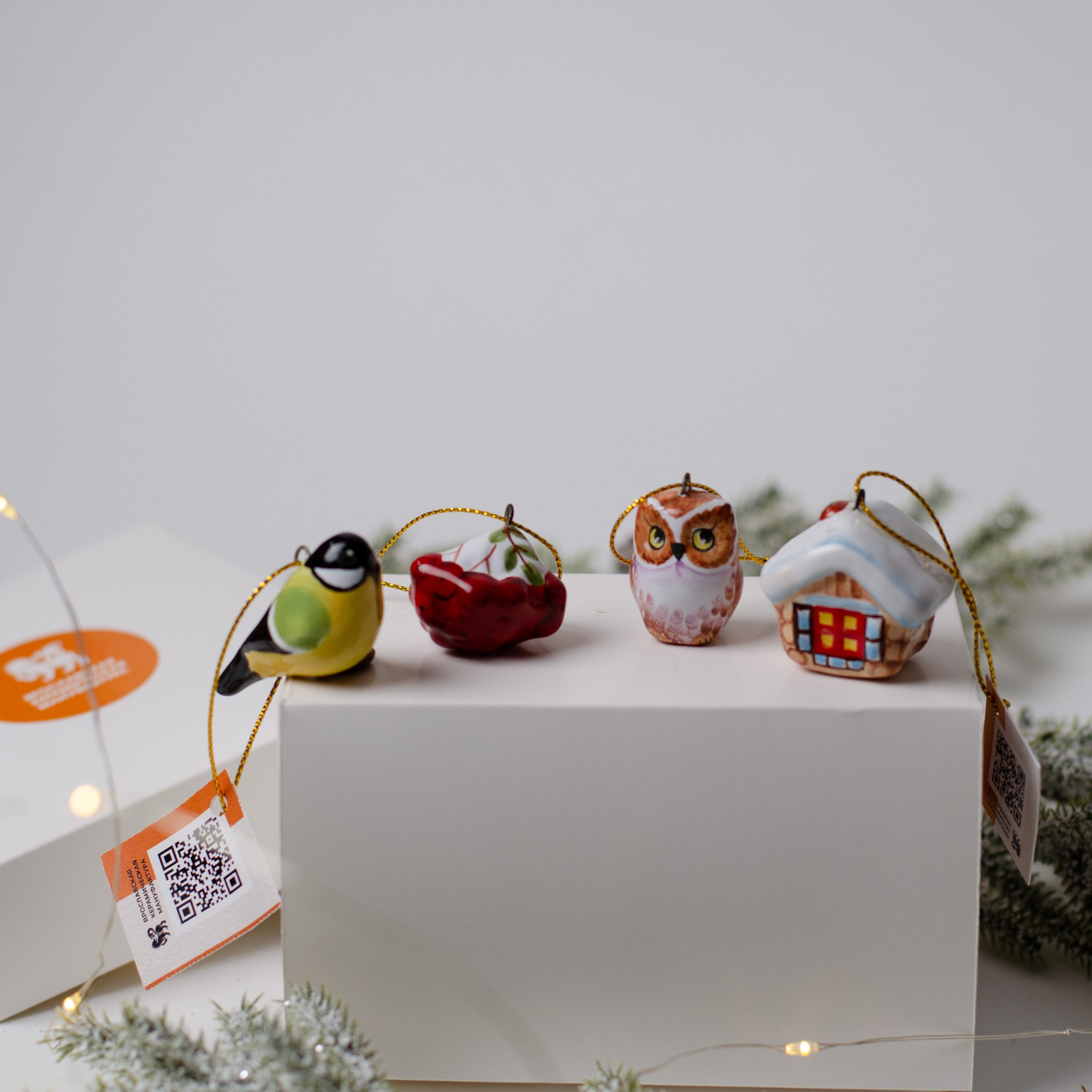 Окунитесь в атмосферу зимнего чуда с набором елочных украшений №10. В комплект входят четыре фигурки: Синичка, Ветка рябины, Избушка, Филин. Набор является частью коллекции миниатюрных новогодних украшений “Игрушки для маленькой елочки”.