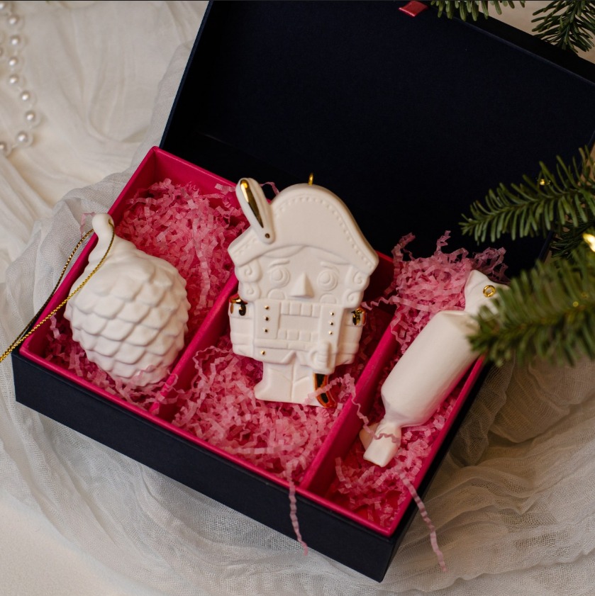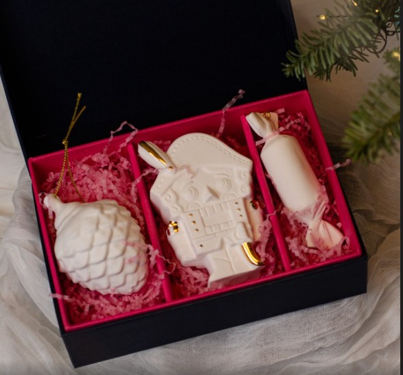 Набор 3 изделий (шишка малая, щелкунчик, конфетка) фарфор