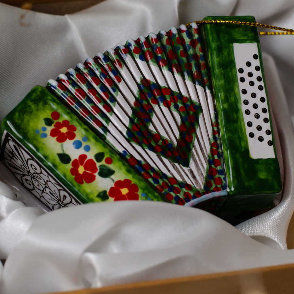 Это изделие представляет набор елочных игрушек ручной работы. В коллекцию Набор “Балалайка и гармонь” представляет инструменты, которые являются душой русского народа. Художник детально асисал яркую чудесную коллекцию, которая привнесёт в интерьер ноты праздничного настроения, привлечет внимание, станет прекрасным подарком на любой праздник.