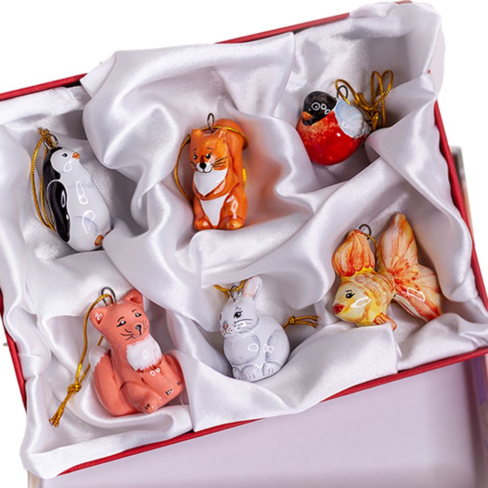 Это изделие представляет набор елочных мини-игрушек ручной работы. В набор входят птичка снегирь, белочка, зайчик, лисичка, пингвиненок, рыбка. Каждая игрушка — это уникальное сочетание узнаваемого образа и мастерского исполнения. Набор «Новый год» безусловно, лучший выбор для украшения маленькой елочки, он также станет прекрасным подарком на Новый год и Рождество вашим близким, друзьям и коллегам.
