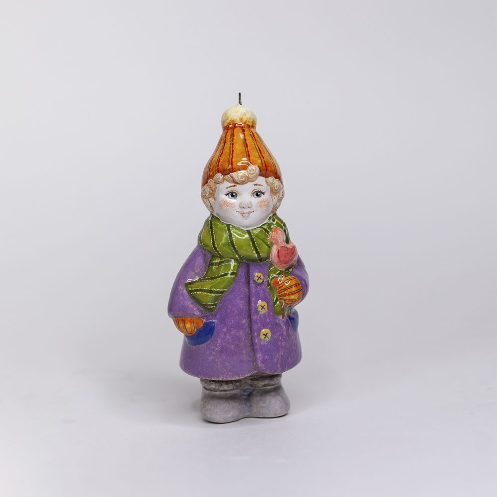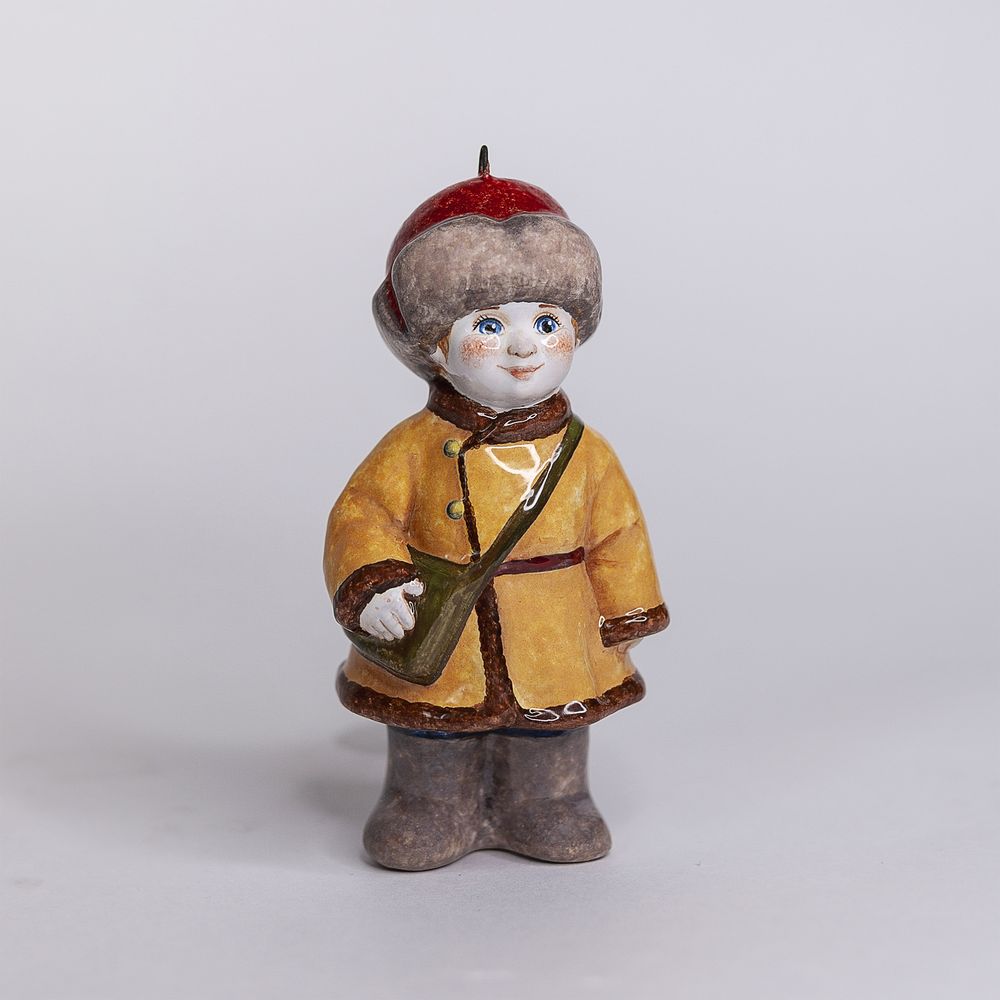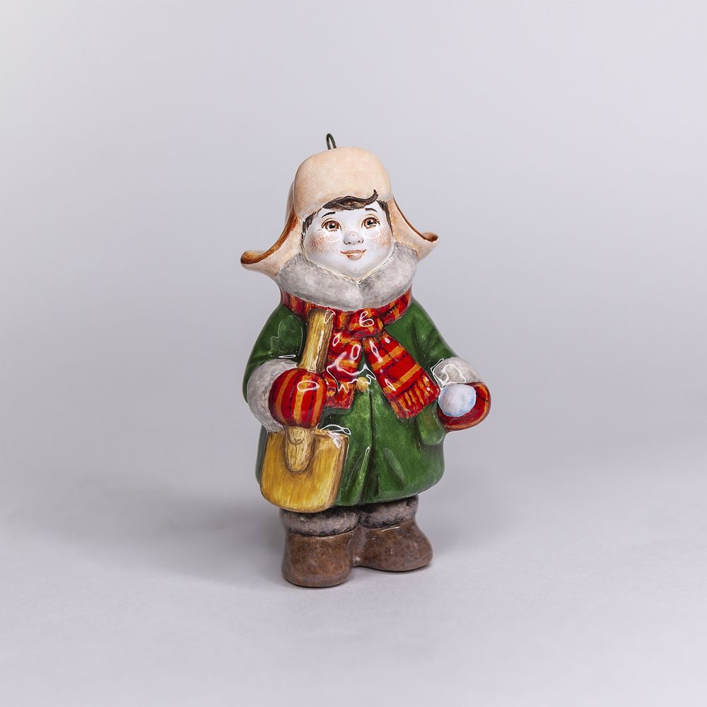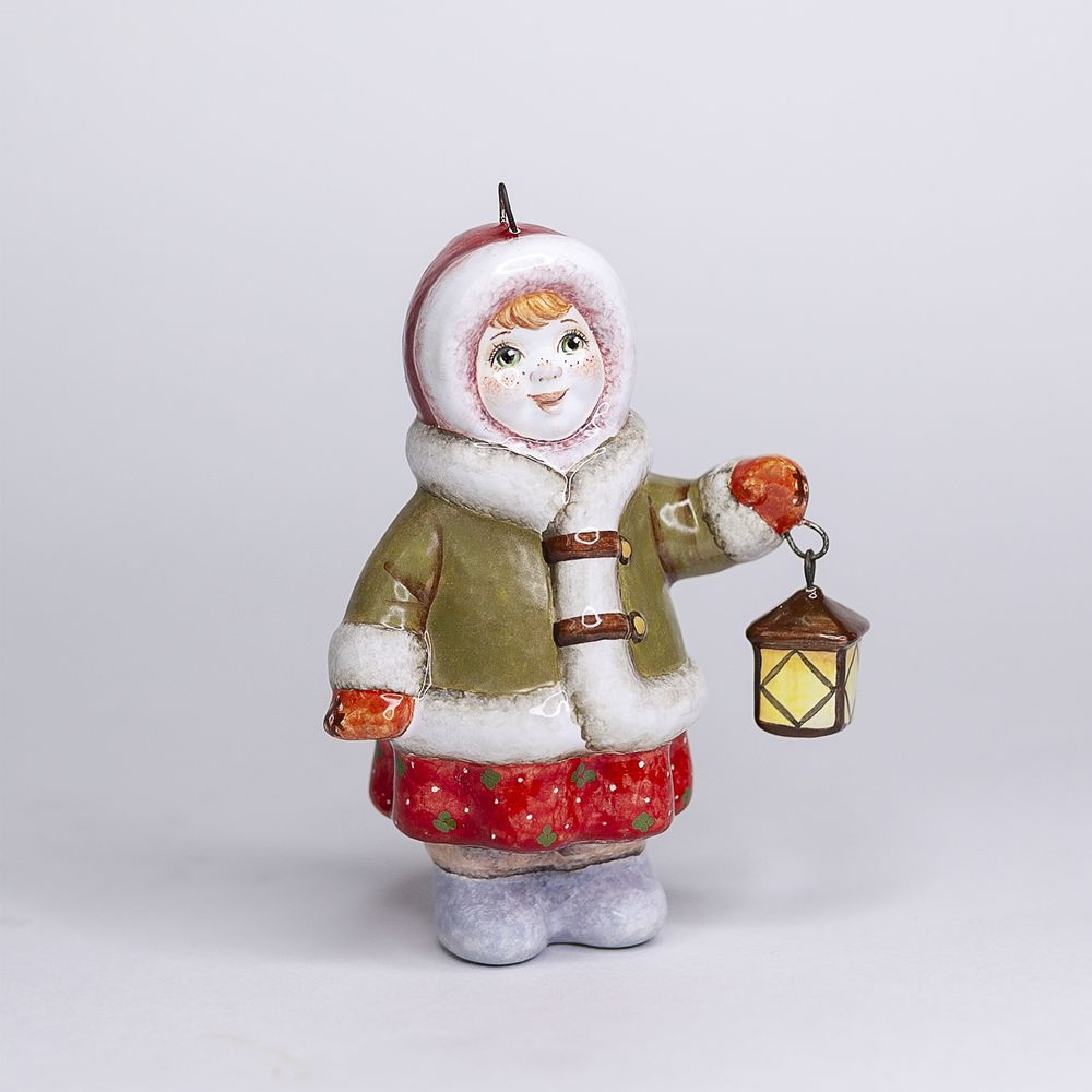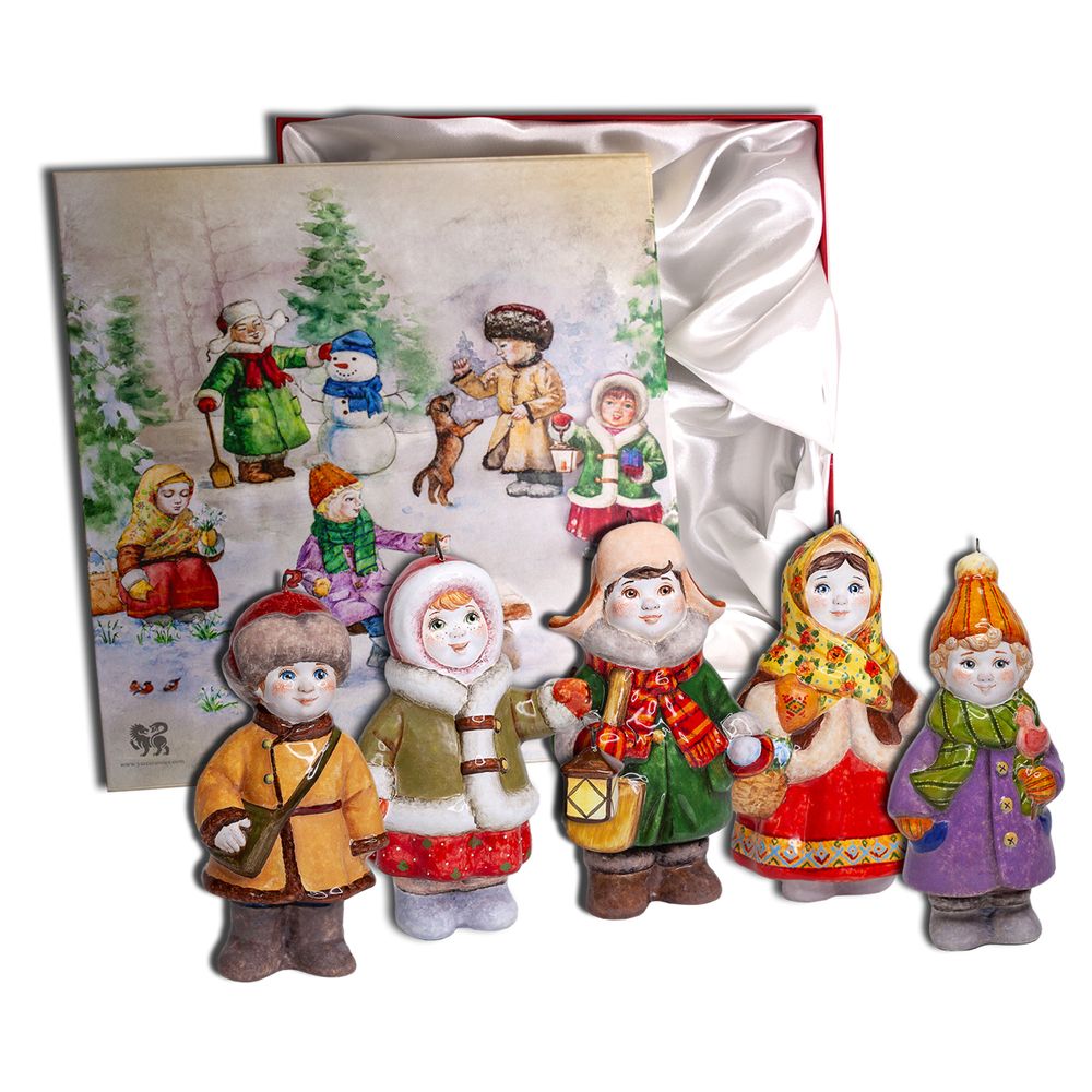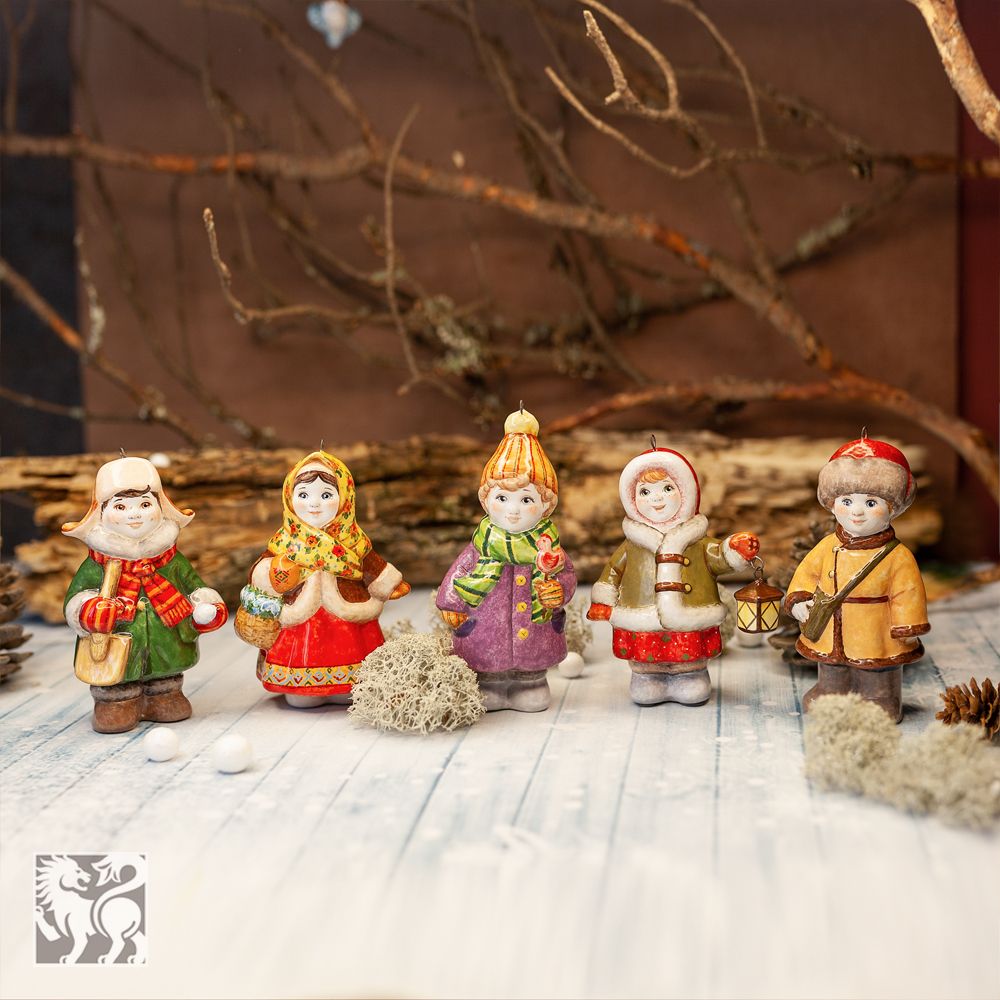 Это изделие представляет набор елочных игрушек ручной работы. В набор «Зима пришла» вошли эксклюзивные фигурки детей: Любава с фонариком, Настенька с подснежниками, Сашенька с леденцом, Егорка с лопаткой, Митюша школьник. Художниками талантливо переданы образы детей. Все игрушки смотрятся ярко и непосредственно, они будут чудесным украшением новогодней елочки, изумительным подарком, порадуют коллекционеров.