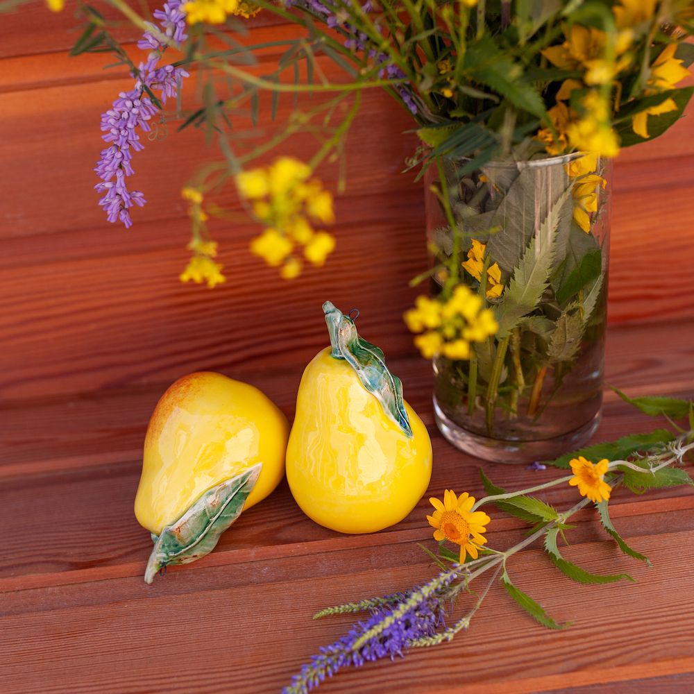 Изделие ручной работы представляет керамическую грушу в натуральную величину. Художник воспользовался всей роскошной палитрой современных керамических глазурей, Груша выглядит совершенно, как настоящая. Груша – символ долгой жизни и ее образ несет в себе соответствующее пожелание. Данное изделие станет украшением вашего интерьера, будет чудесным подарком. Соберите всю коллекцию ярких и красивых фруктов и овощей. Блюдо с фруктами или овощами может быть использовано для создания эффектных интерьеров в кафе, ресторанах, барах или как модель на уроках рисования.